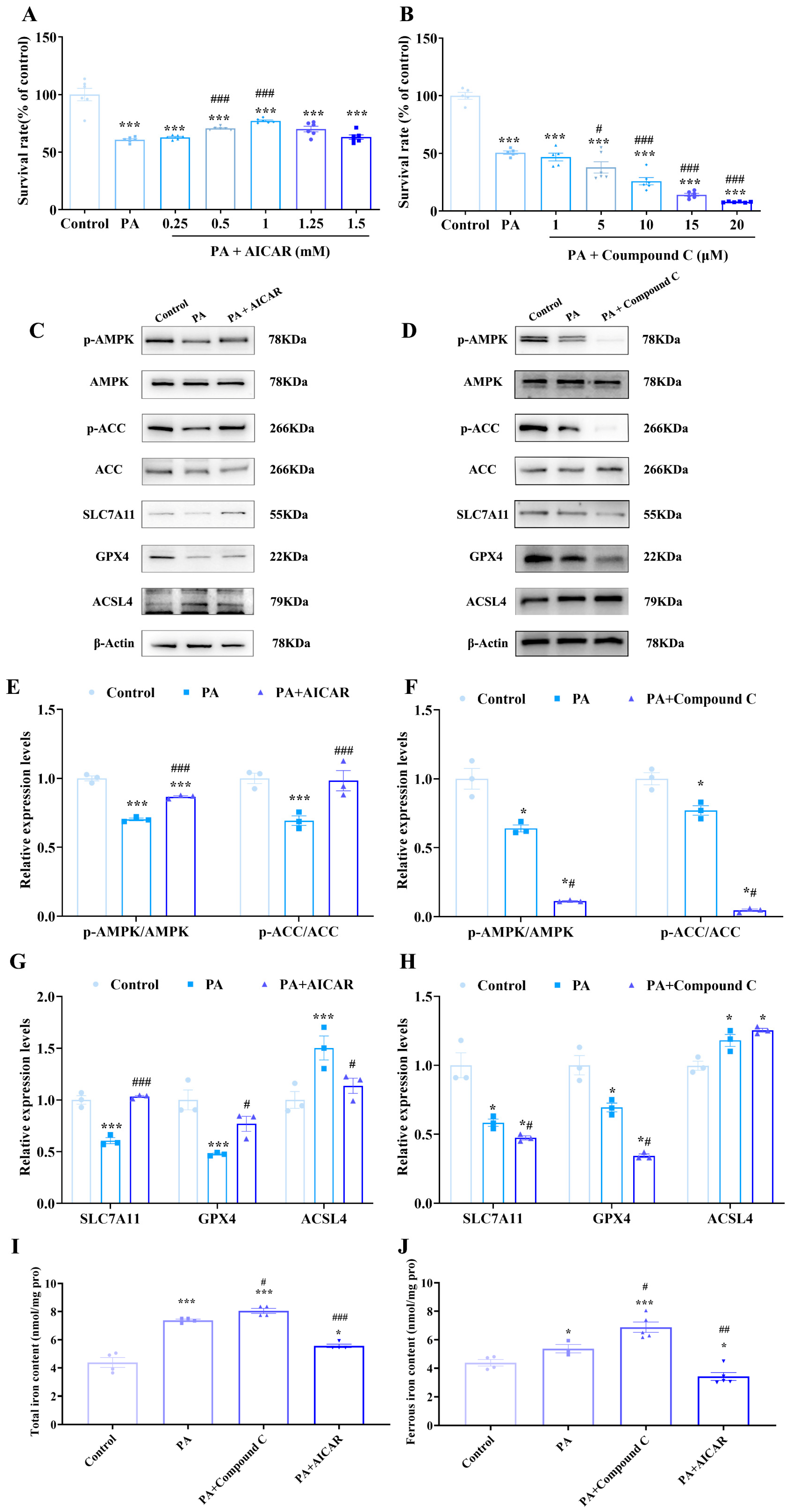 2.11. Activation of the AMPK/ACC Pathway Inhibits PA-Induced Ferroptosis of C2C12 Myoblasts