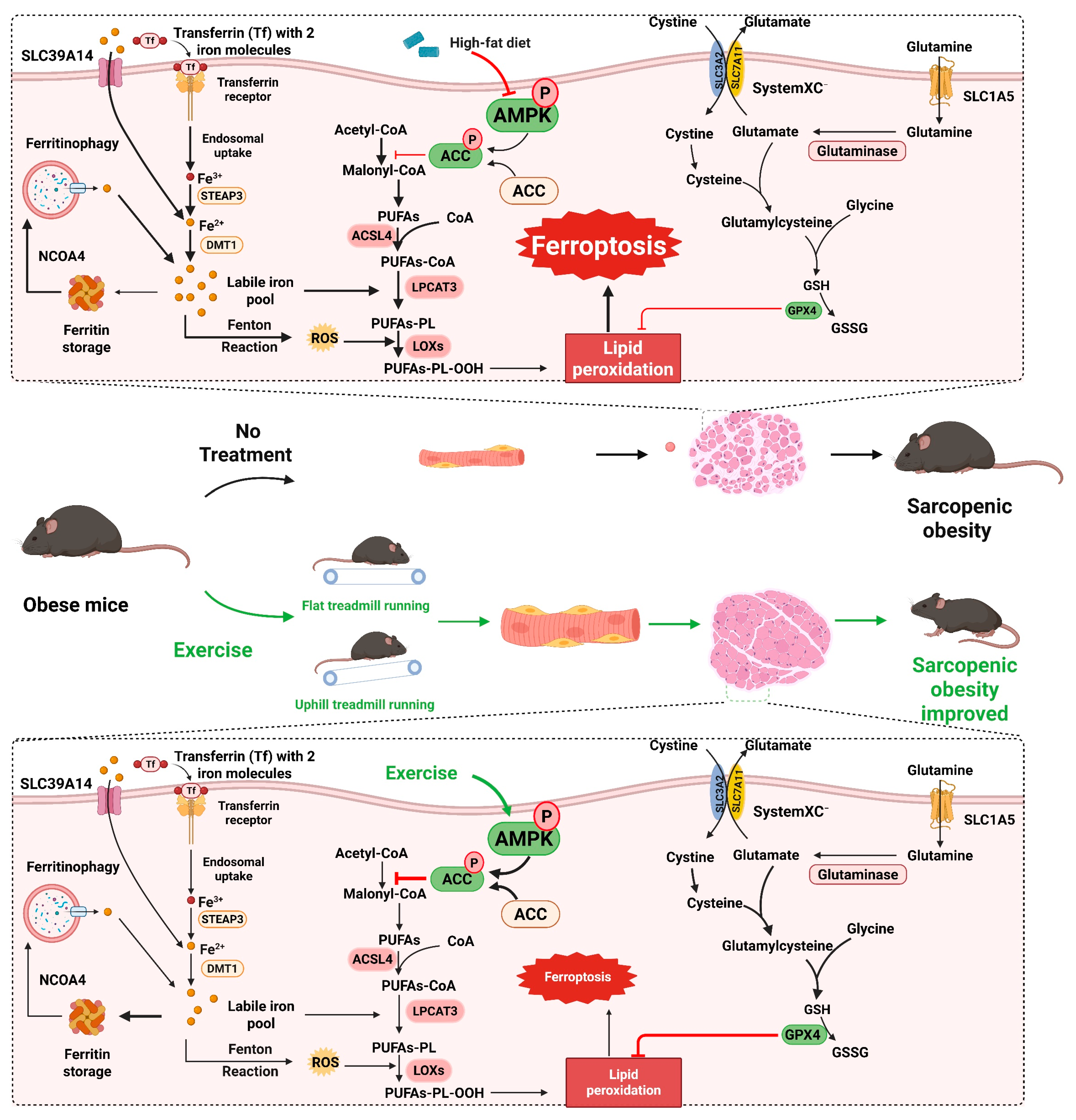 Chicago/Turabian StyleRu, Qin, Congyue Xu, Chongzhou Wan, Bei Cheng, Xiao Xiang, Li Fang, Junqing Ren, Lin Chen, and Yuxiang Wu. 2026. "Exercise Improves Sarcopenic Obesity Through Inhibition of Ferroptosis and Activation of the AMPK/ACC Pathway" International Journal of Molecular Sciences 27, no. 3: 1187. https://doi.org/10.3390/ijms27031187