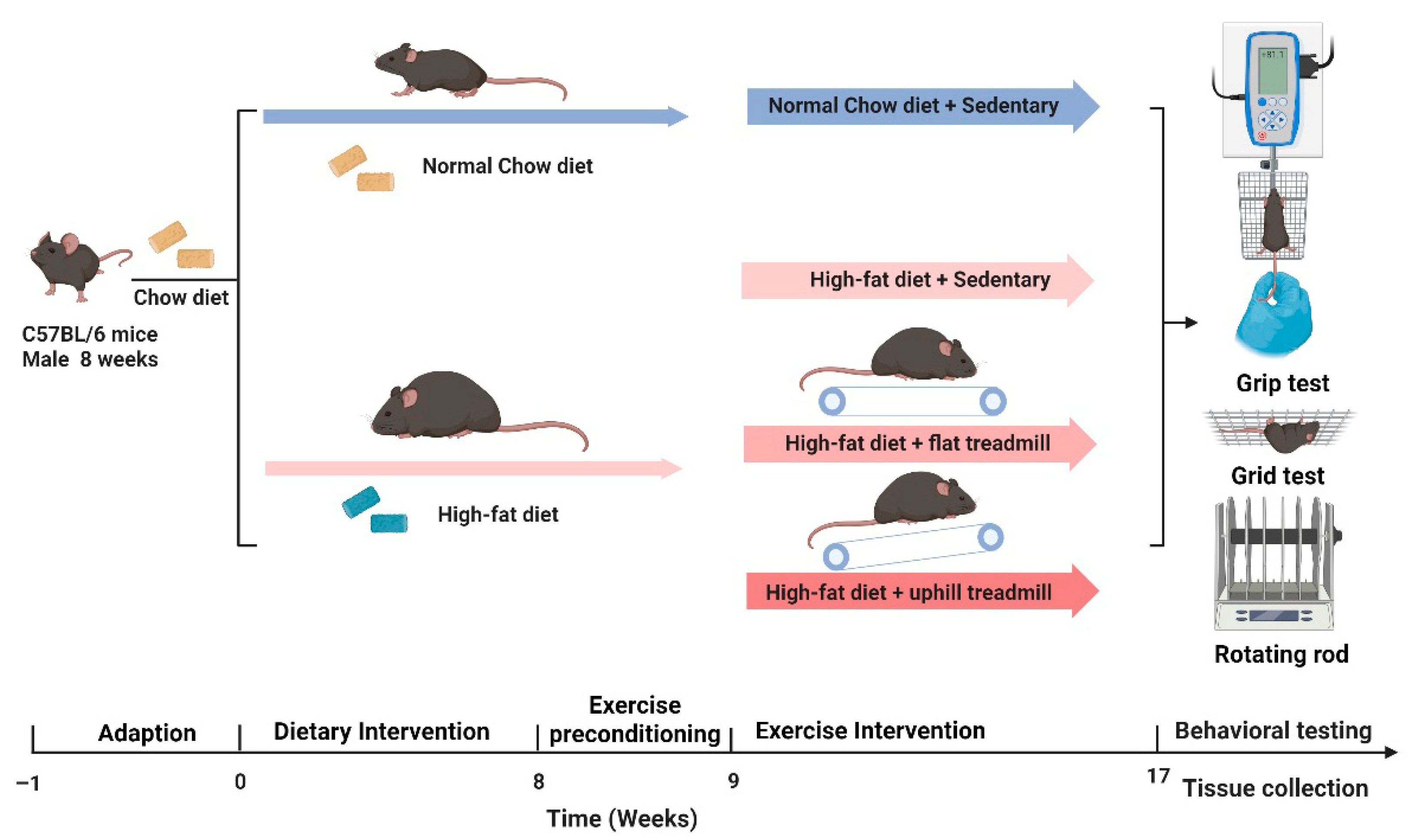 - Kim, H.J.; Kim, Y.J.; Kim, I.Y.; Seong, J.K. Resistance exercise training-induced skeletal muscle strength provides protective effects on high-fat-diet-induced metabolic stress in mice. Lab. Anim. Res. 2022, 38, 36. [Google Scholar] [CrossRef] [PubMed]