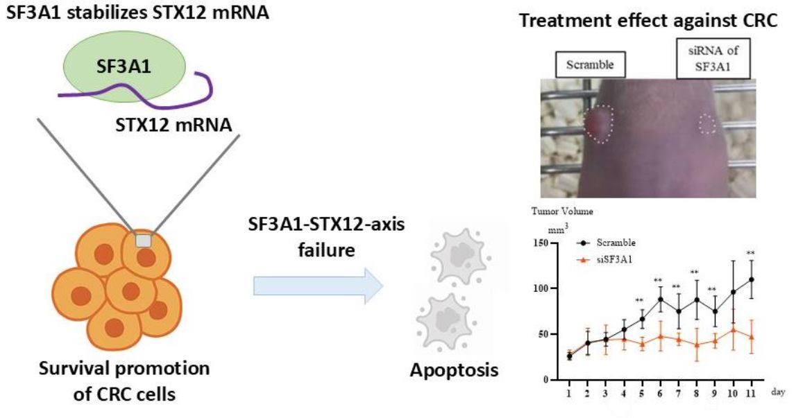 Sasaki T, Konishi H, Dokoshi T, Sakatani A, Tanaka H, Yamamoto K, Takahashi K, Ando K, Ueno N, Kashima S, et al. Splicing Factor 3a Subunit 1 Promotes Colorectal Cancer Growth via Anti-Apoptotic Effects of Syntaxin12. International Journal of Molecular Sciences. 2026; 27(3):1195. https://doi.org/10.3390/ijms27031195