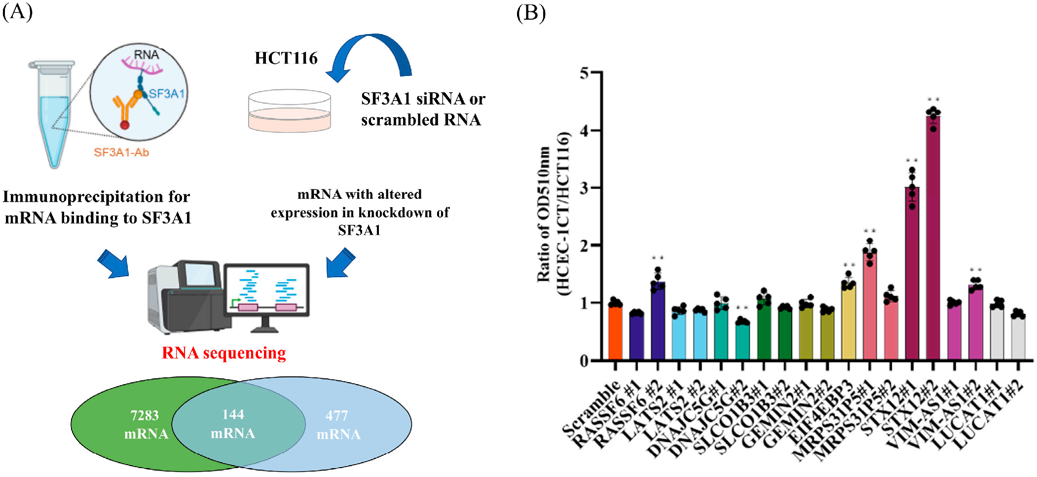 | IP-Transcriptome Analysis (SF3A1/IgG) | Transcriptome Analysis (SF3A1/Scramble) | |||
