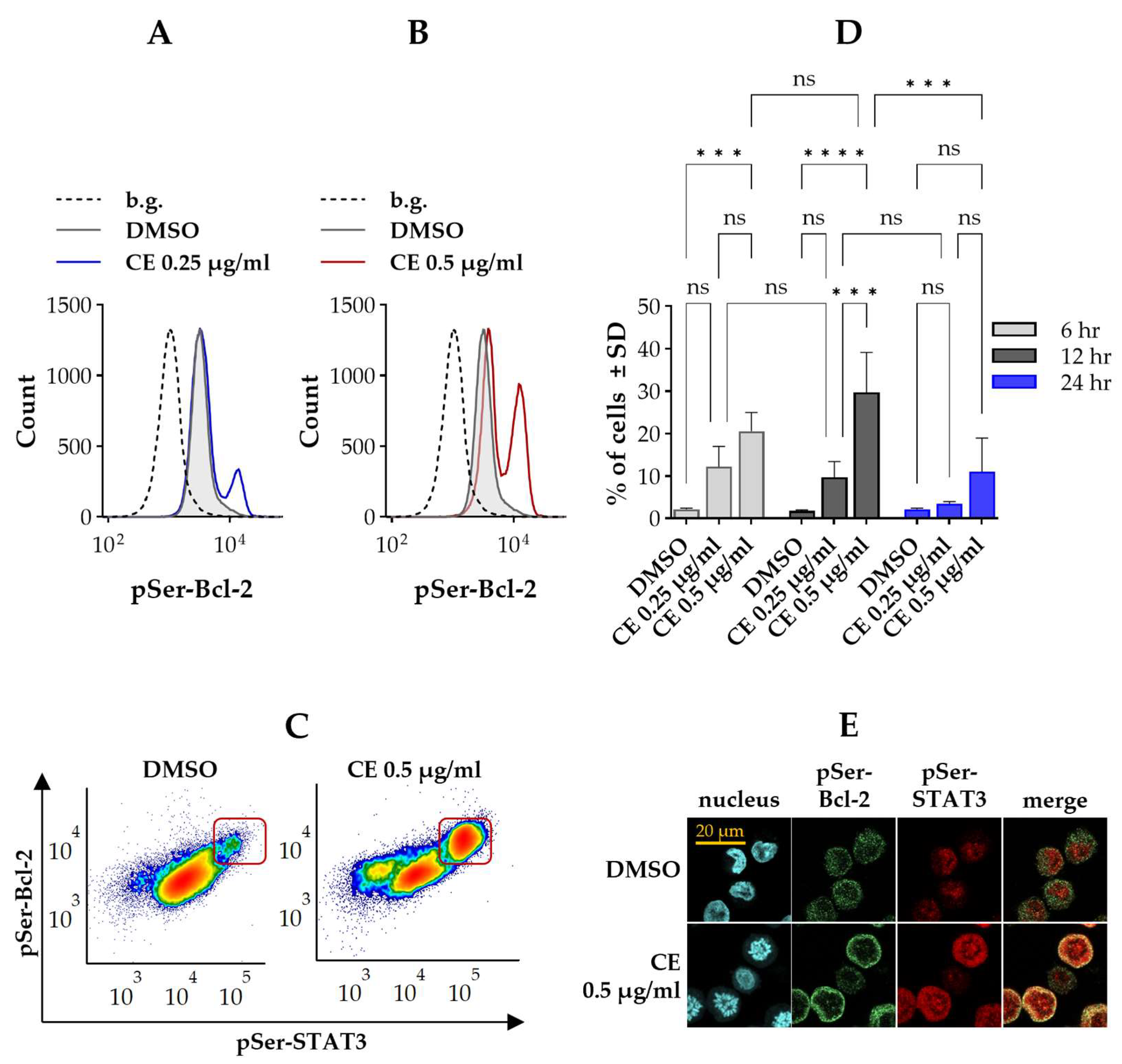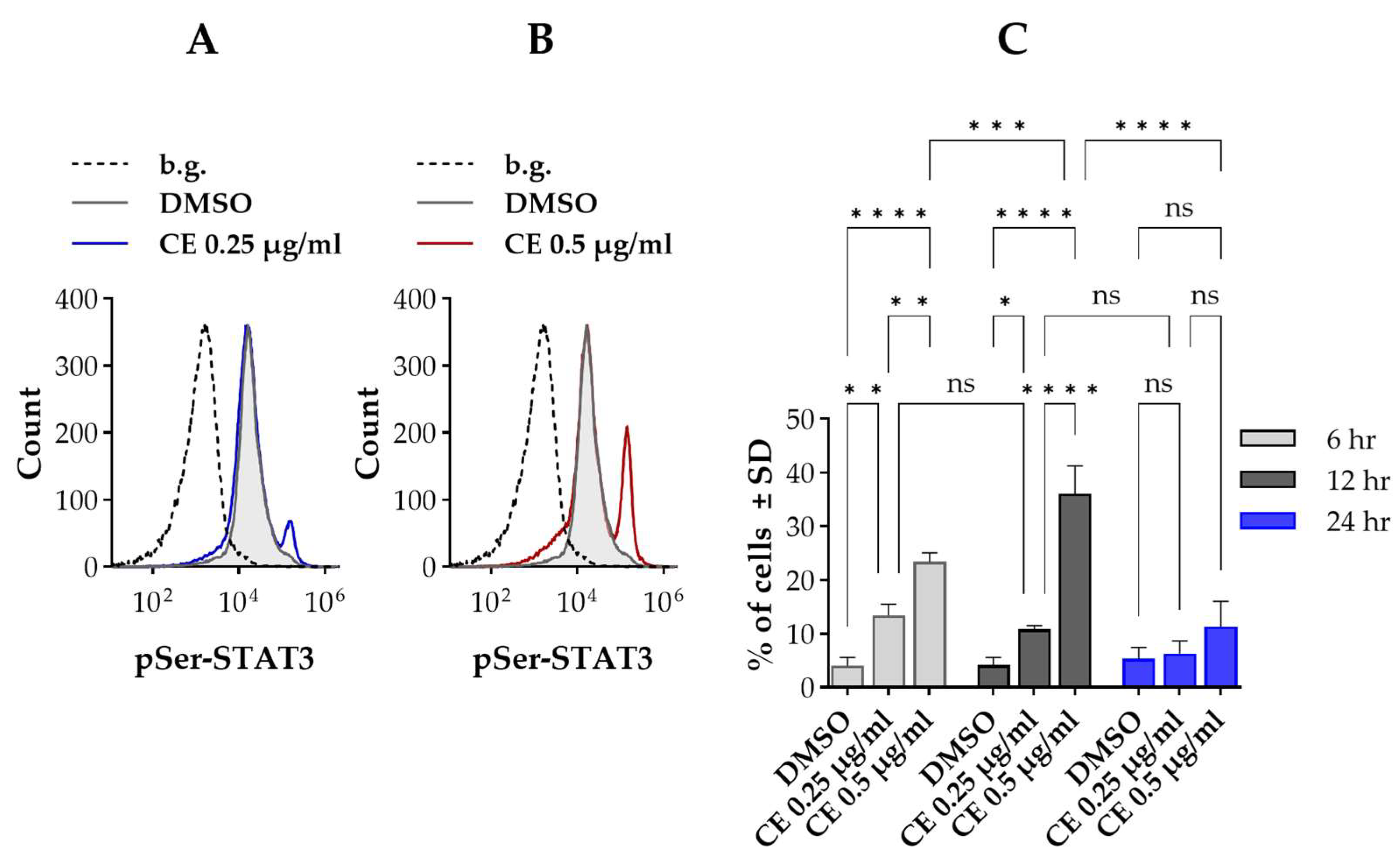 2.1. Chelidonine Increases the Level of Serine-Phosphorylated STAT3 in a Distinct Subpopulation of Kit225 K6 Cells
