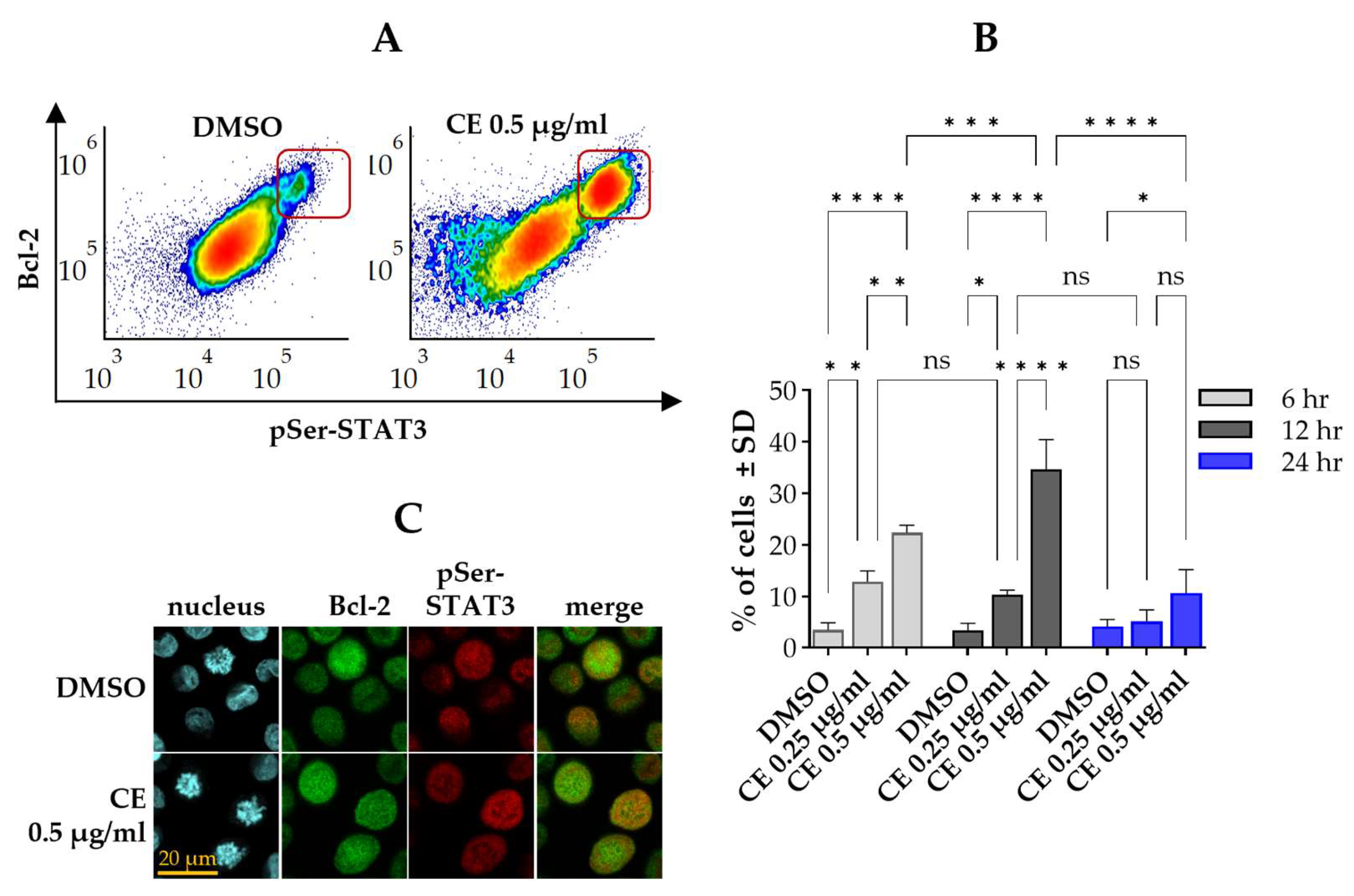 2.4. Chelidonine Induces a Coordinated Elevation of Serine-Phosphorylated Bcl-2 and STAT3