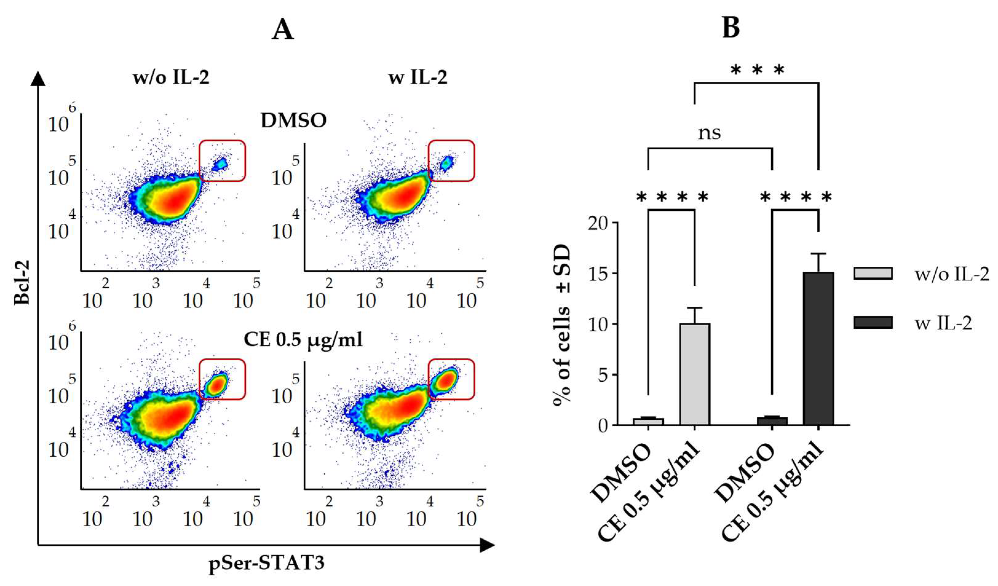 2.5. Chelidonine-Induced Alterations in pSer-STAT3 and Bcl-2 Levels May Occur Independently of IL-2 Signaling