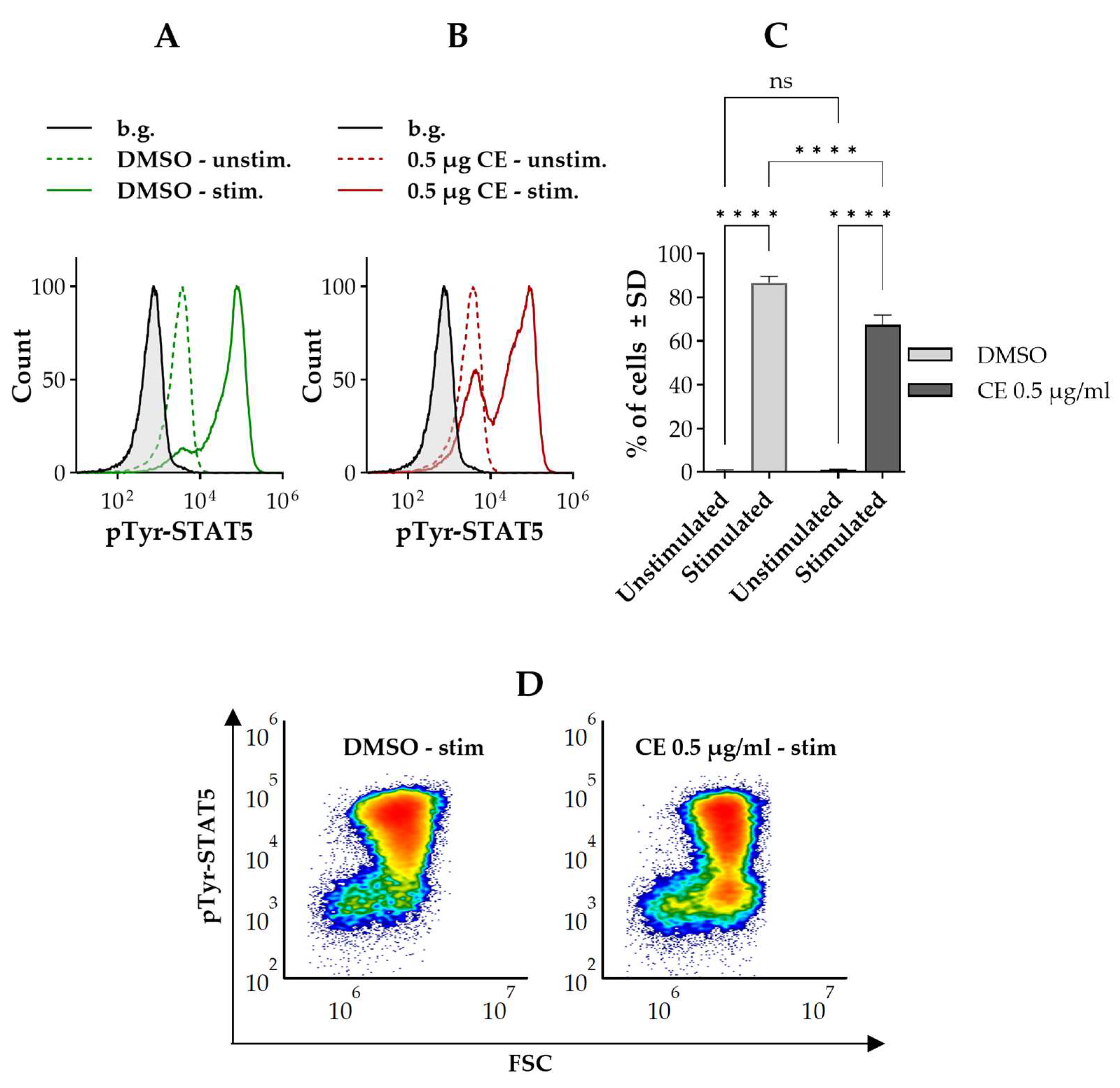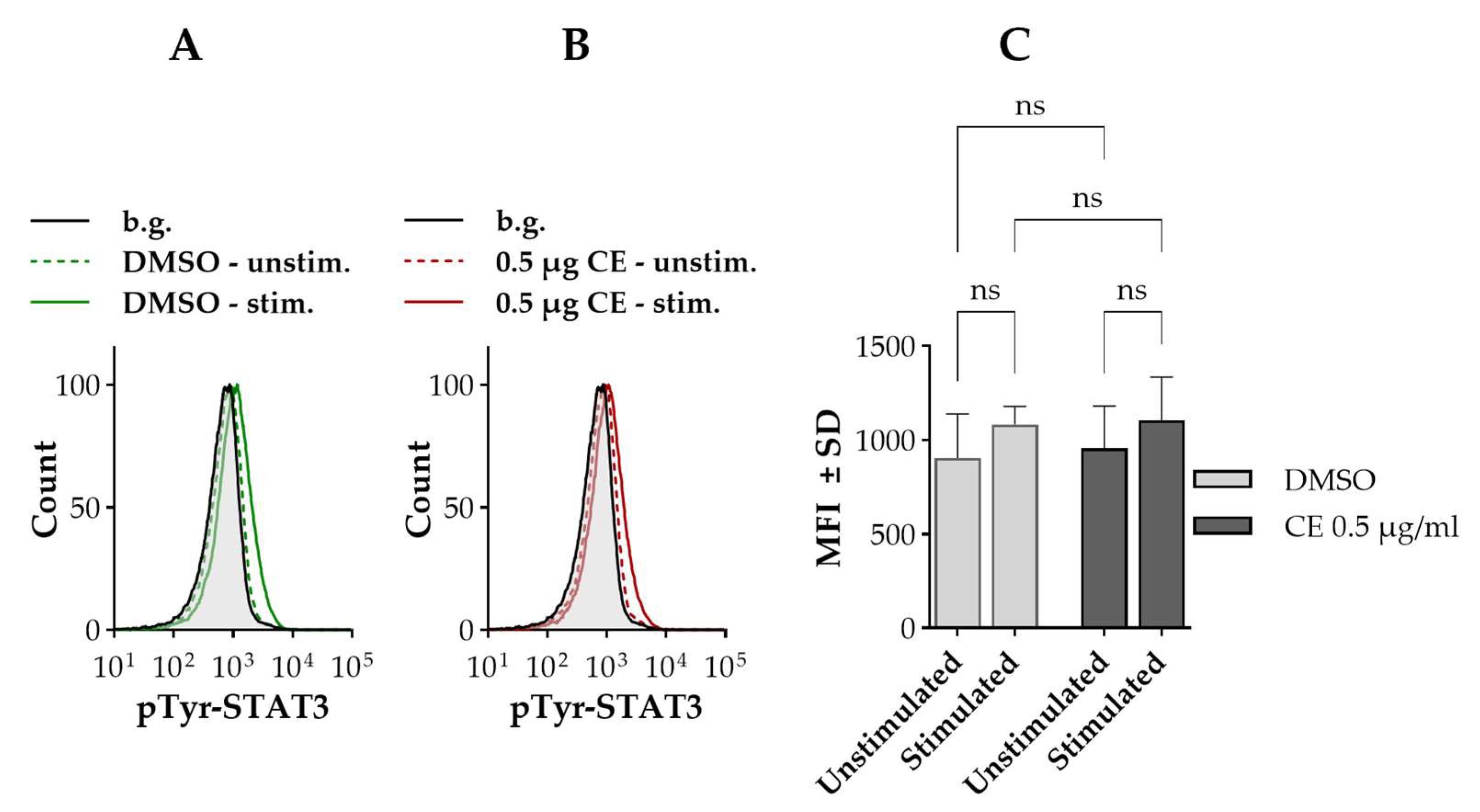 2.6. IL-2 Failed to Induce STAT3 Activation, and Chelidonine Likewise Showed No Significant Effect Under the Applied Experimental Conditions