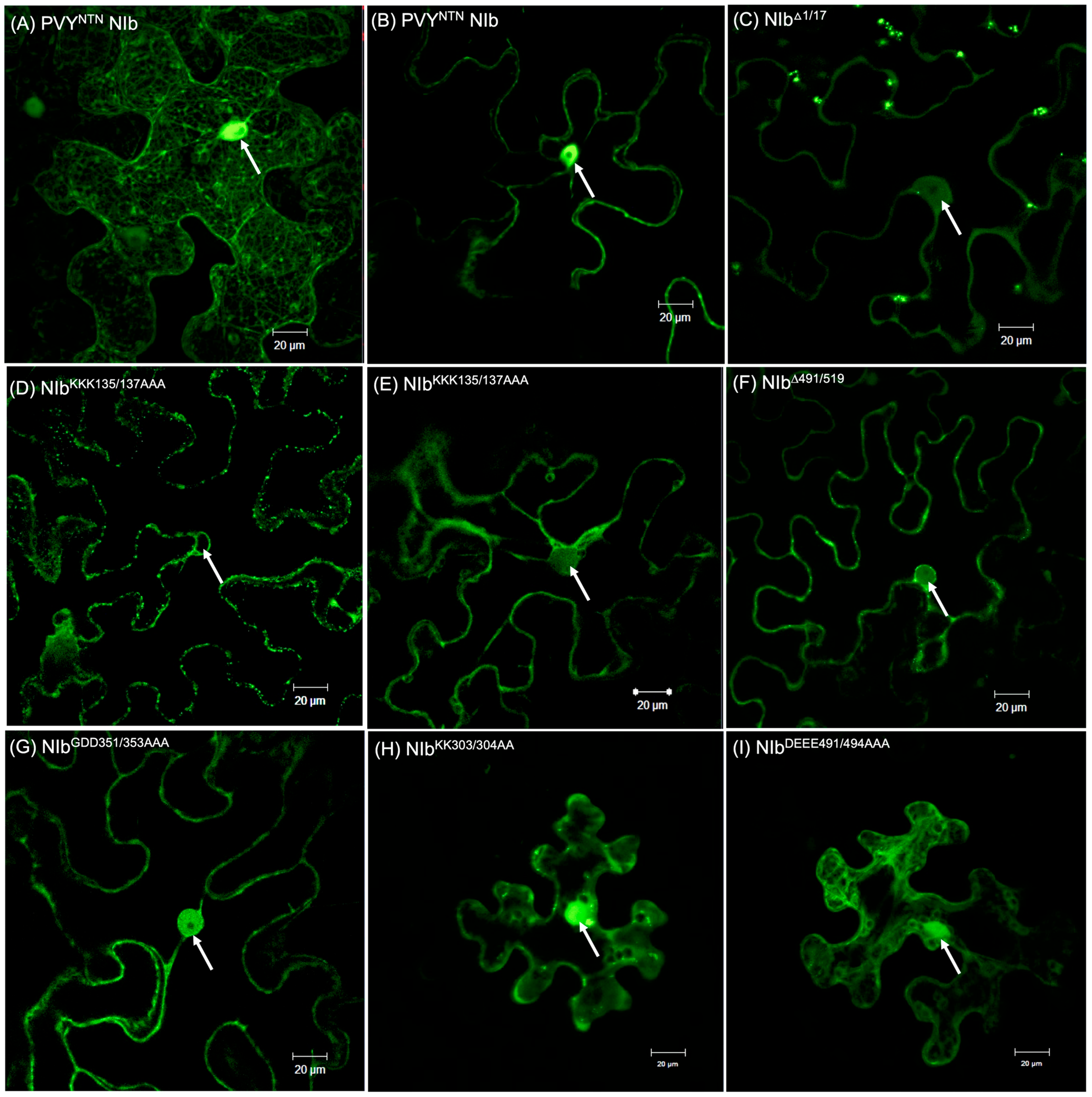 4.4. Determination of Subcellular Localization of NIb and NIb Mutants