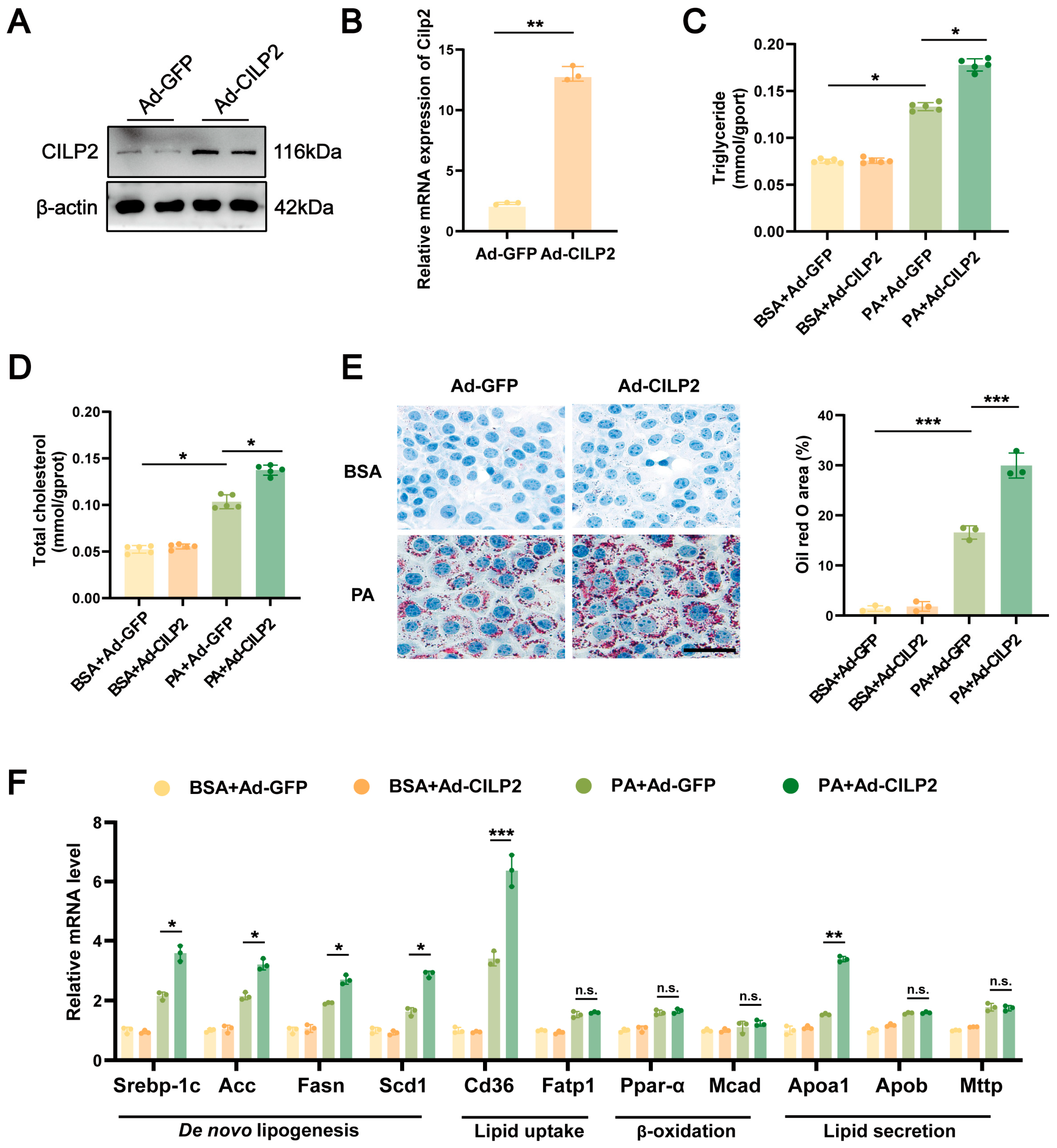 2.2. CILP2 Overexpression Enhanced Lipid Accumulation in Hepatocytes