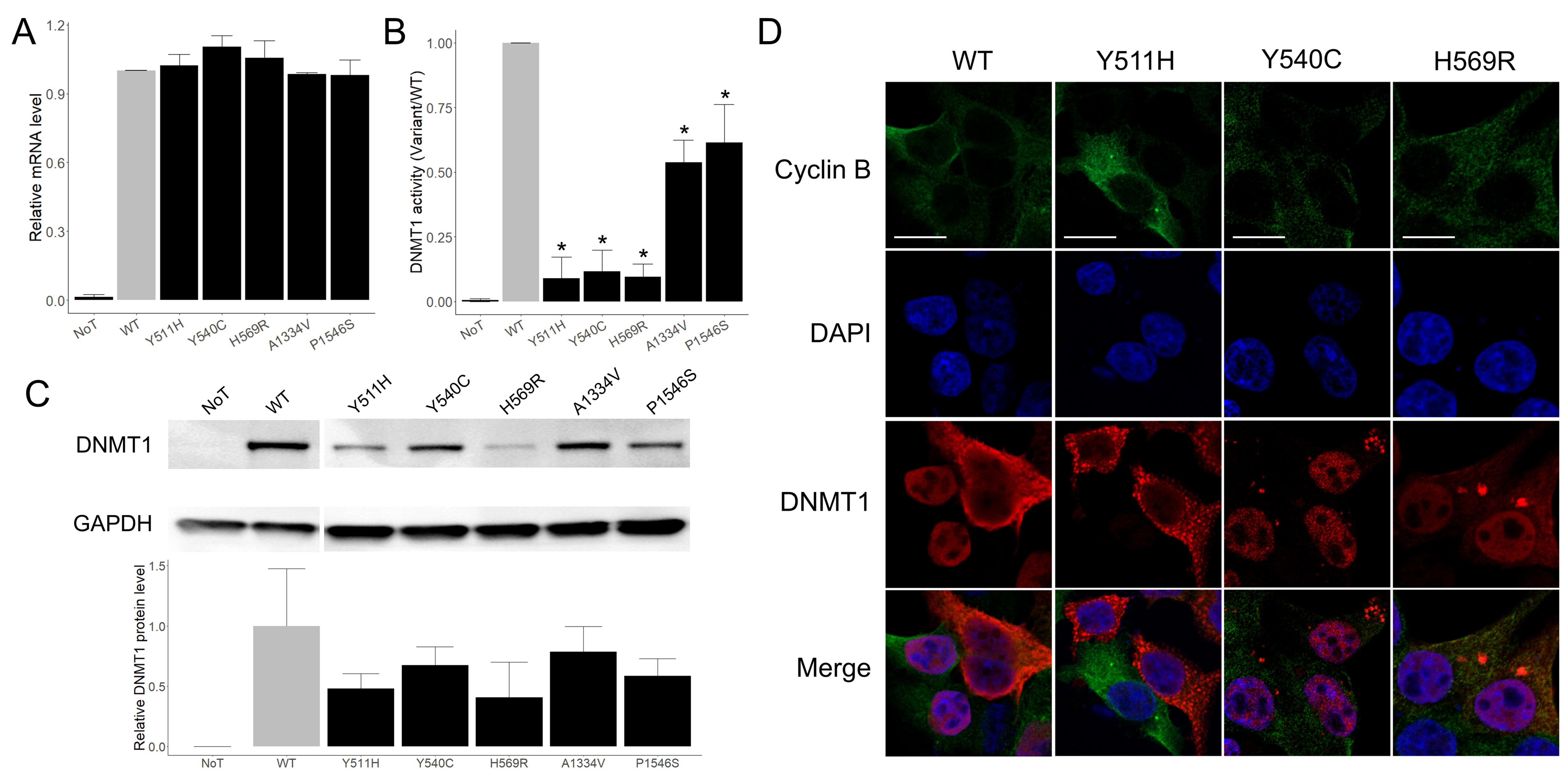 2.3. Conserved DNMT1 mRNA Expression in HEK293T Cells Expressing DNMT1 Variants