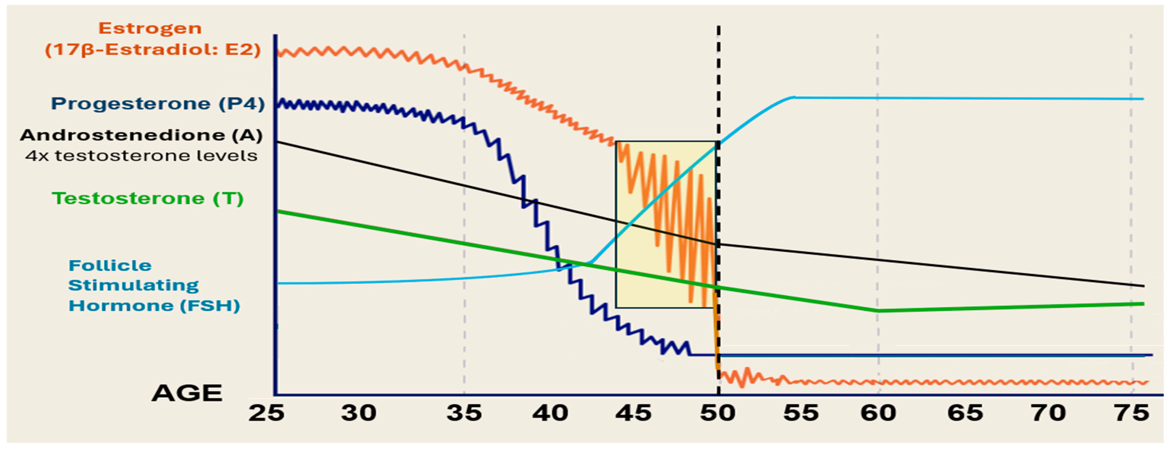 3.2. Changes in Hormone Levels with Aging in Women