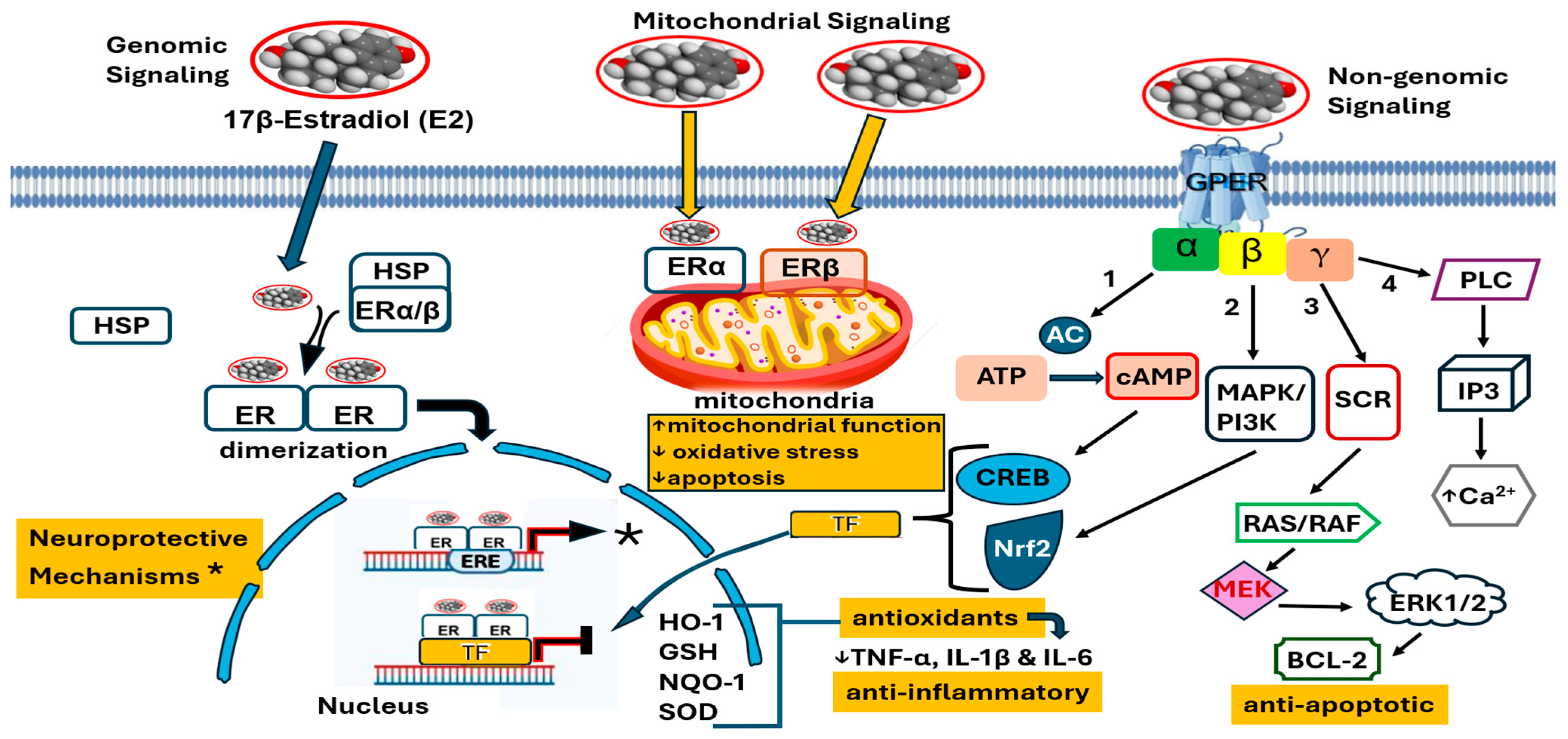 3.4. Roles of Estrogen Receptors in Neurodegeneration