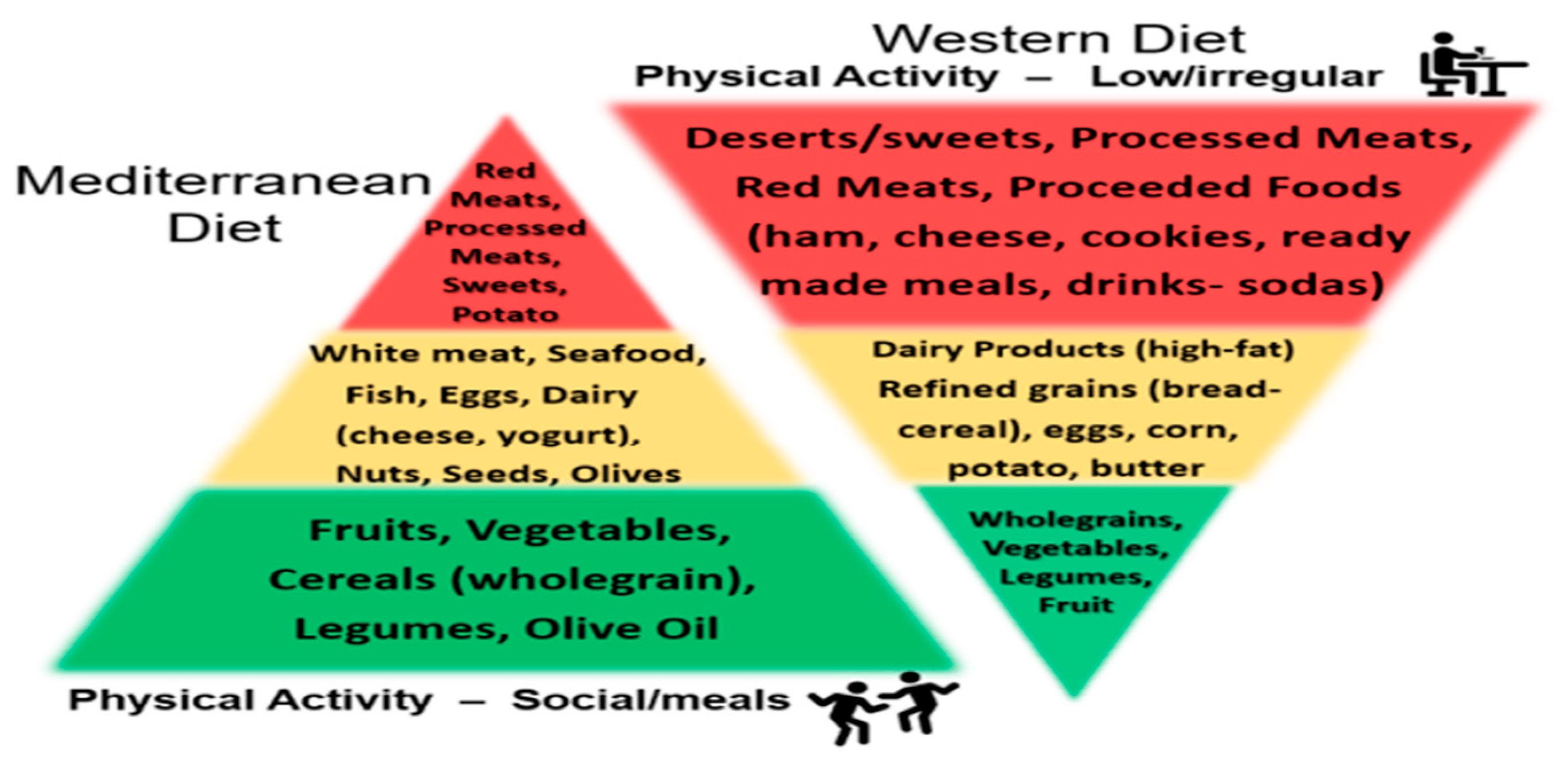 4.1. The Mediterranean Diet Versus the Western Diet