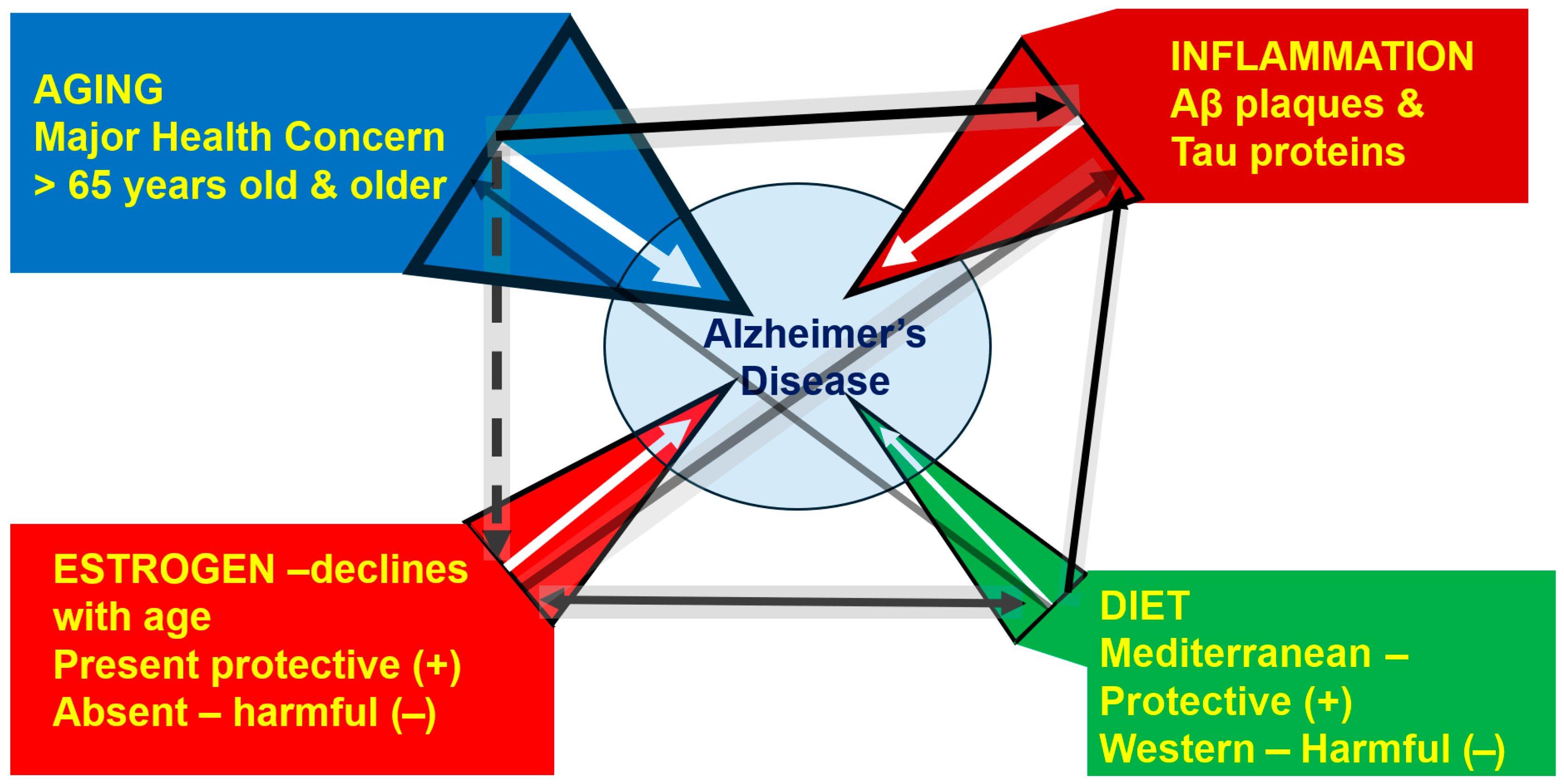 Lephart, E.D.; Weber, K.S.; Hedges, D.W. Assessing the Roles of Aging, Estrogen, Nutrition, and Neuroinflammation in Women and Their Involvement in Alzheimer’s Disease—A Narrative Overview. Int. J. Mol. Sci. 2026, 27, 1239. https://doi.org/10.3390/ijms27031239