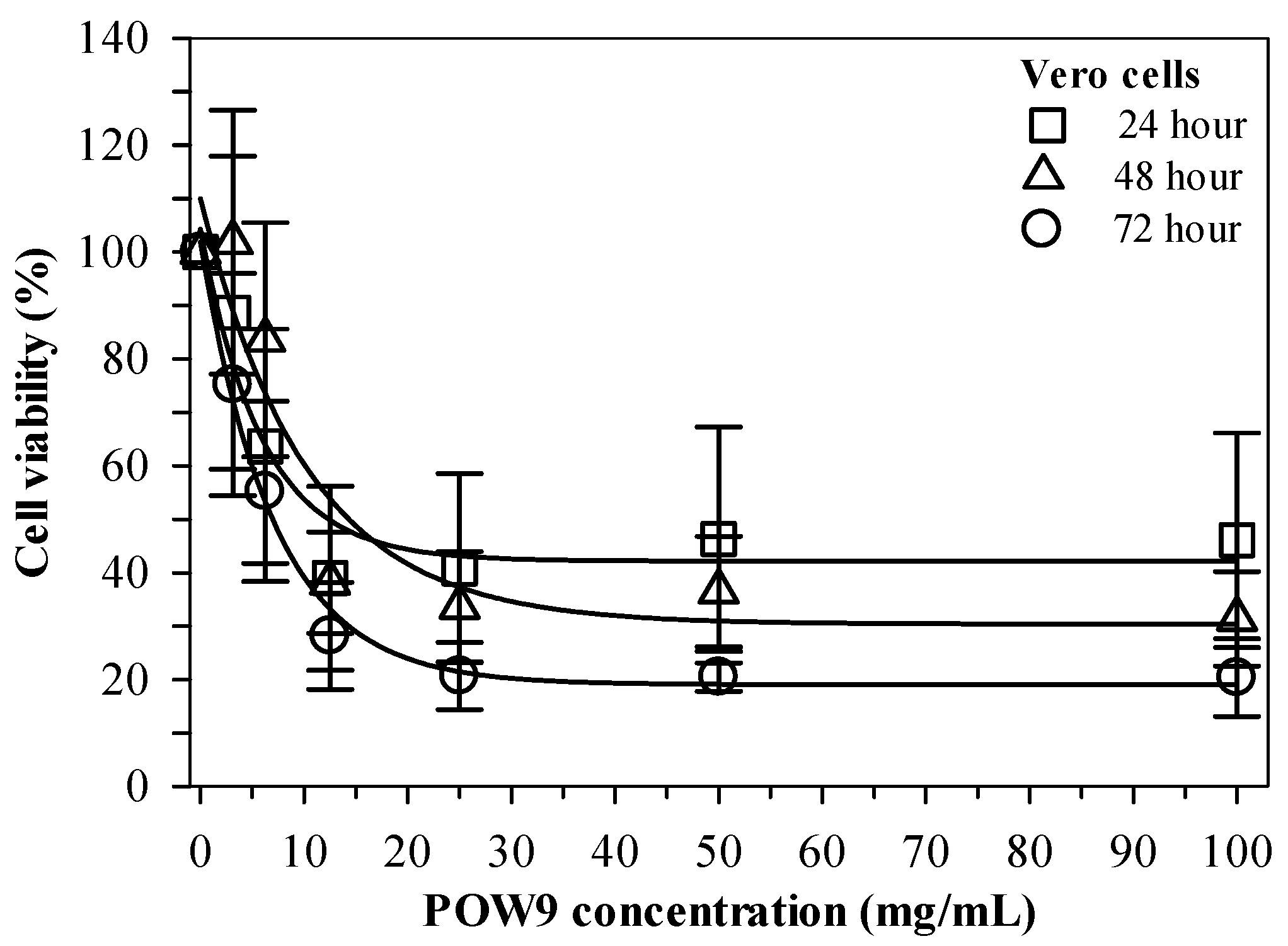 2.3. Effect of POW9TM on Vero Cell Viability