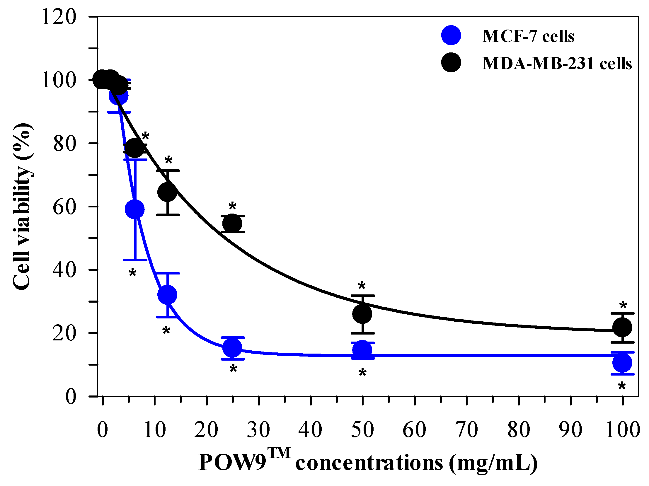 2.4. Antiproliferative Effect of POW9™ on Breast Cancer Cells