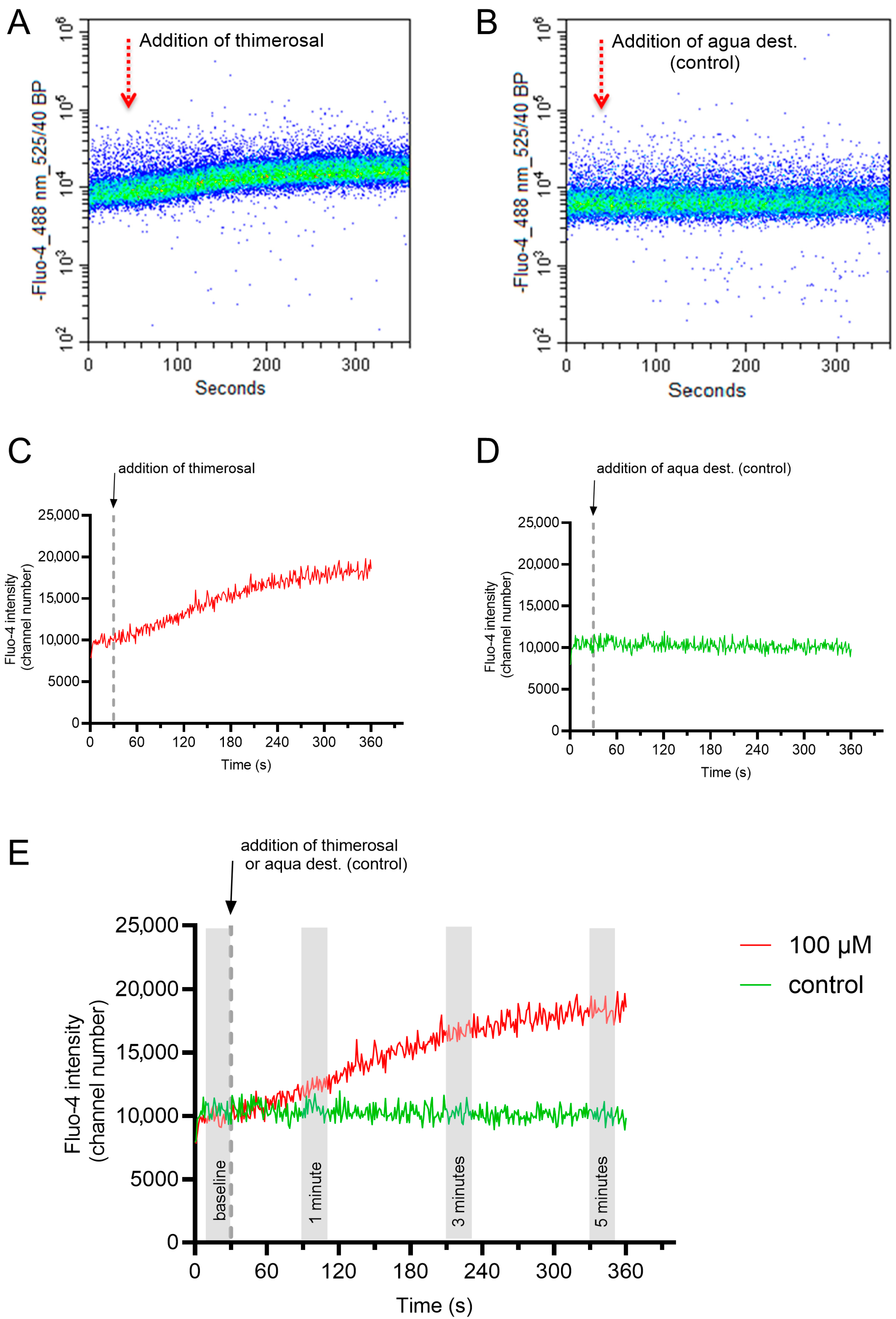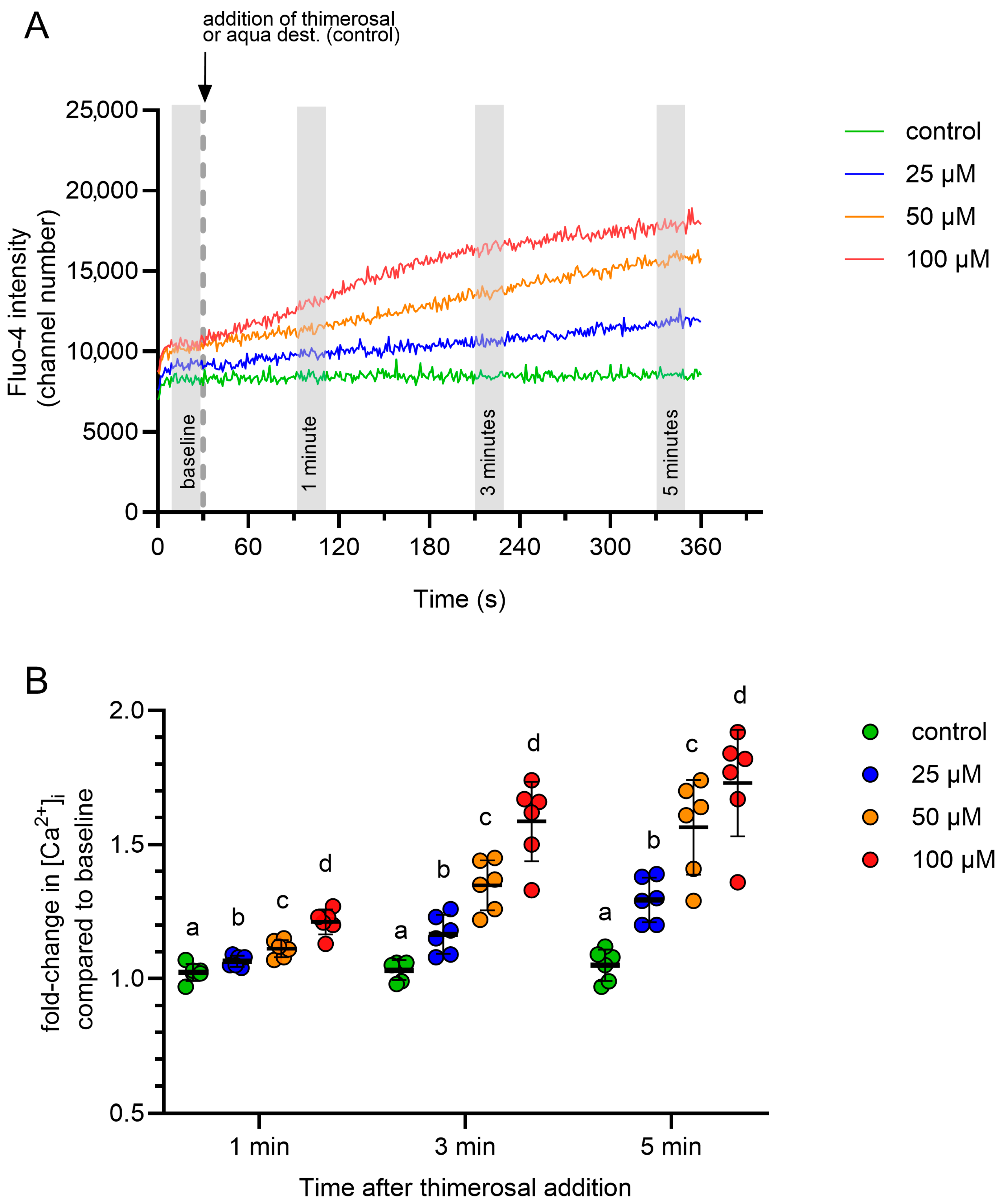 2.3. Dose–Response Effect of Thimerosal on Intracellular Ca2+ Concentration