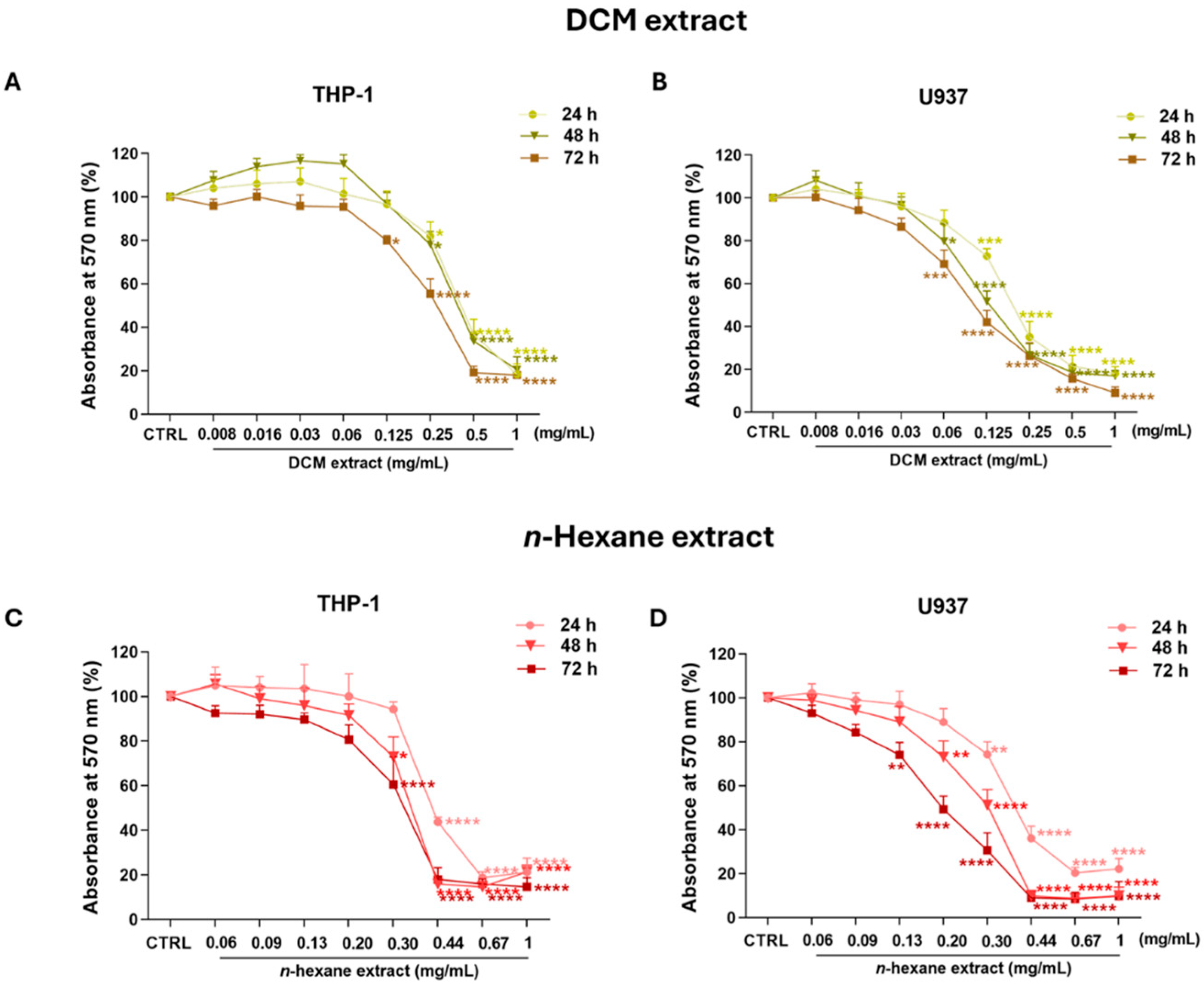 Antiproliferative Activity of n-Hexane and Dichloromethane Extracts in Acute Myeloid Leukemia Cells