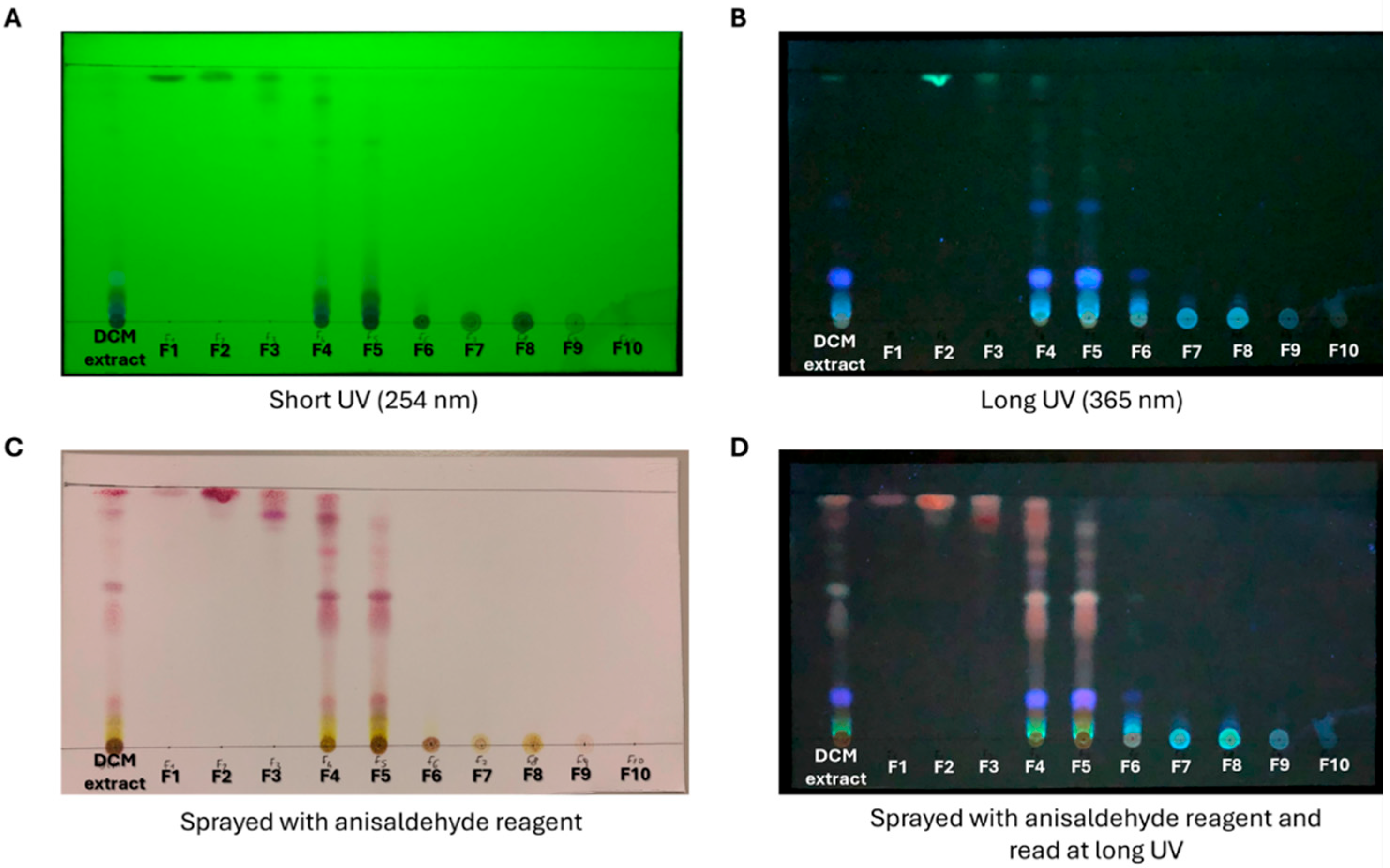 2.2. Fractionation of Dichloromethane Extract via Vacuum Liquid Chromatography