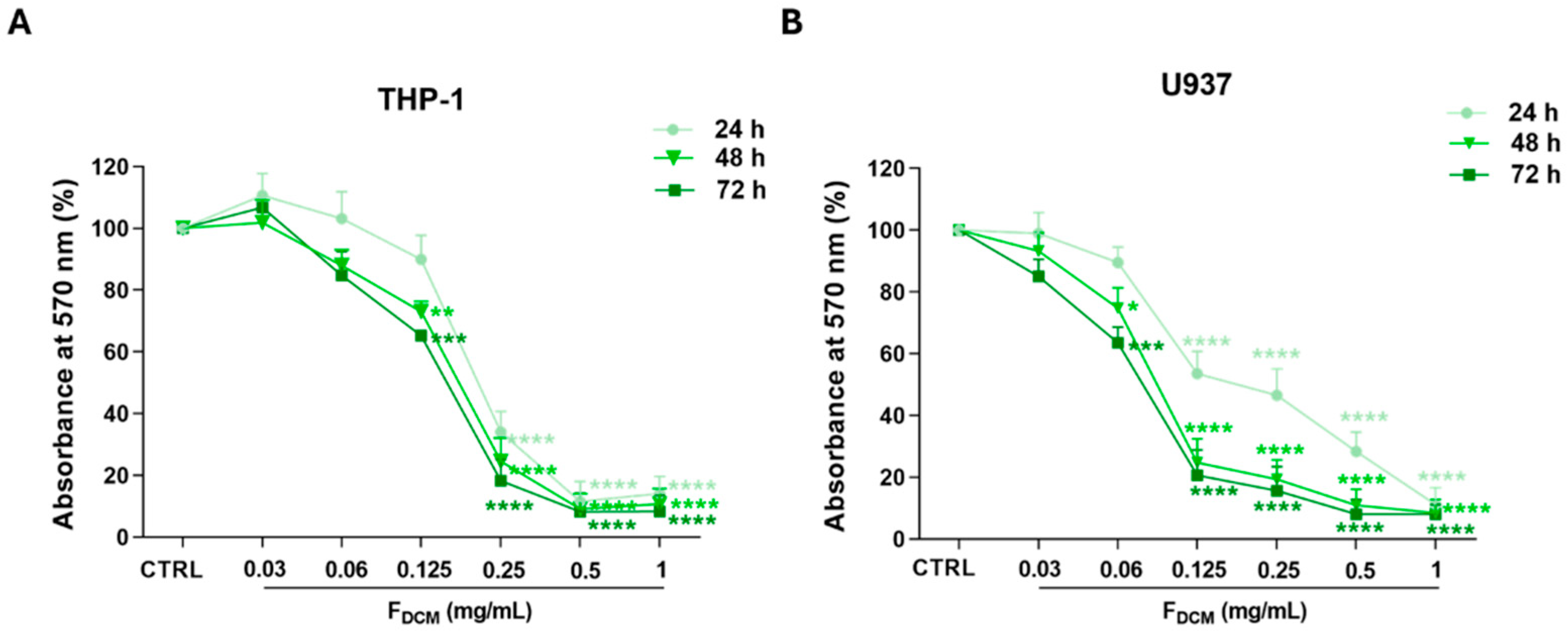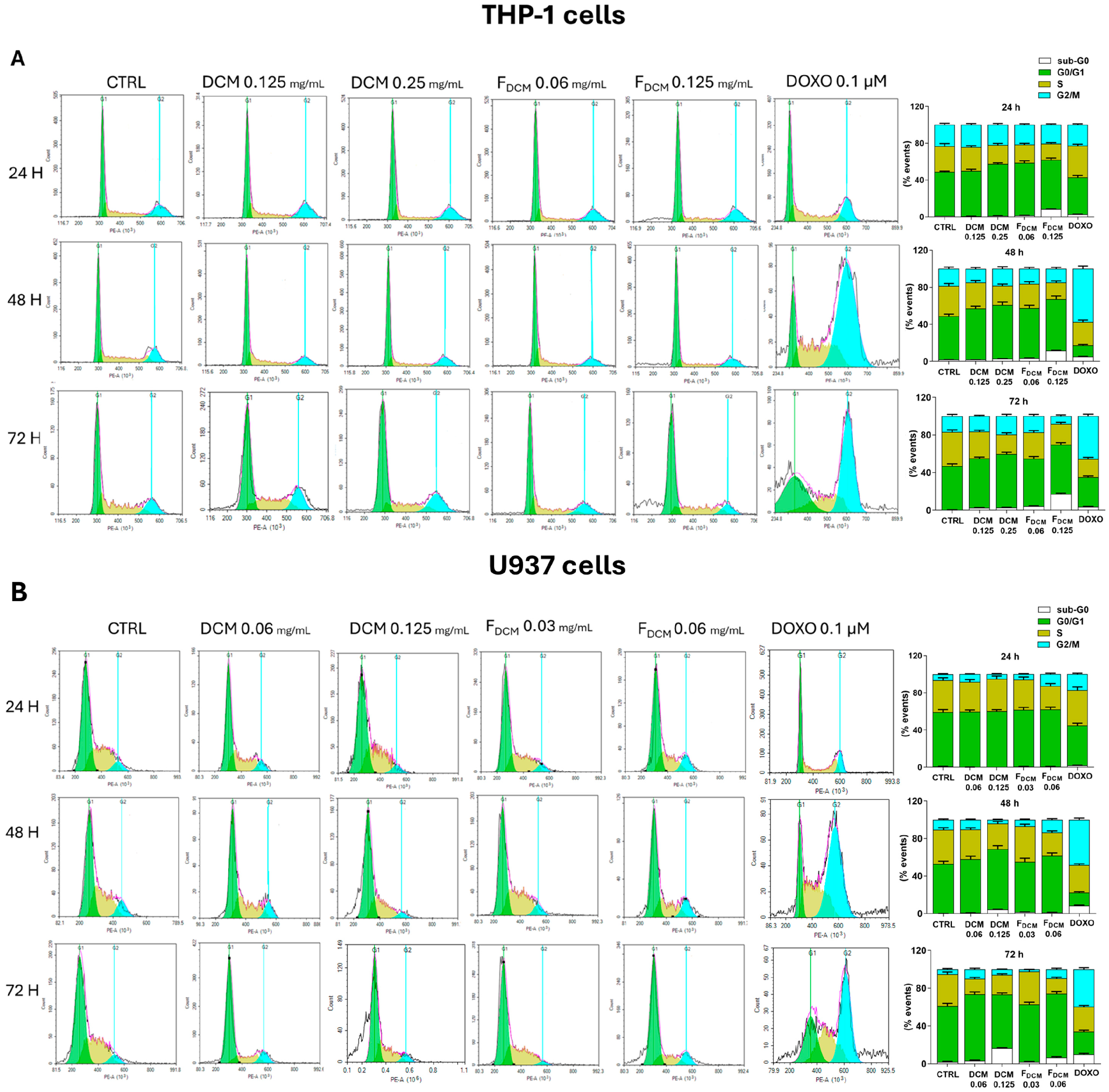 2.6.1. Both Dichloromethane Extract and Fractions Altered the Cell Cycle of Acute Myeloid Leukemia Cells