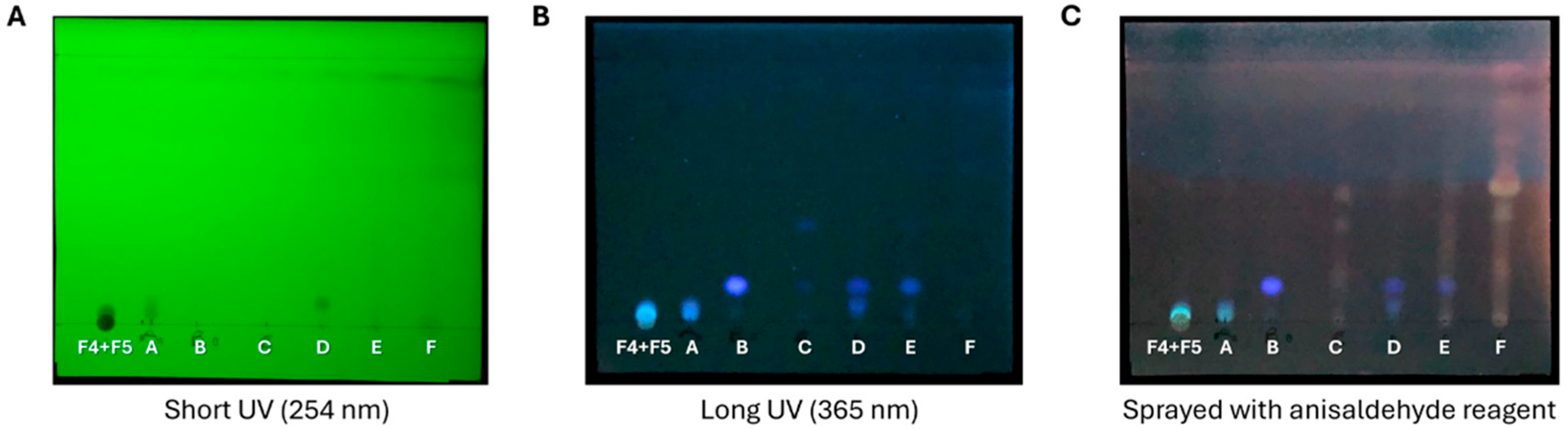 2.3. Isolation of Compounds via Preparative Thin-Layer Chromatography