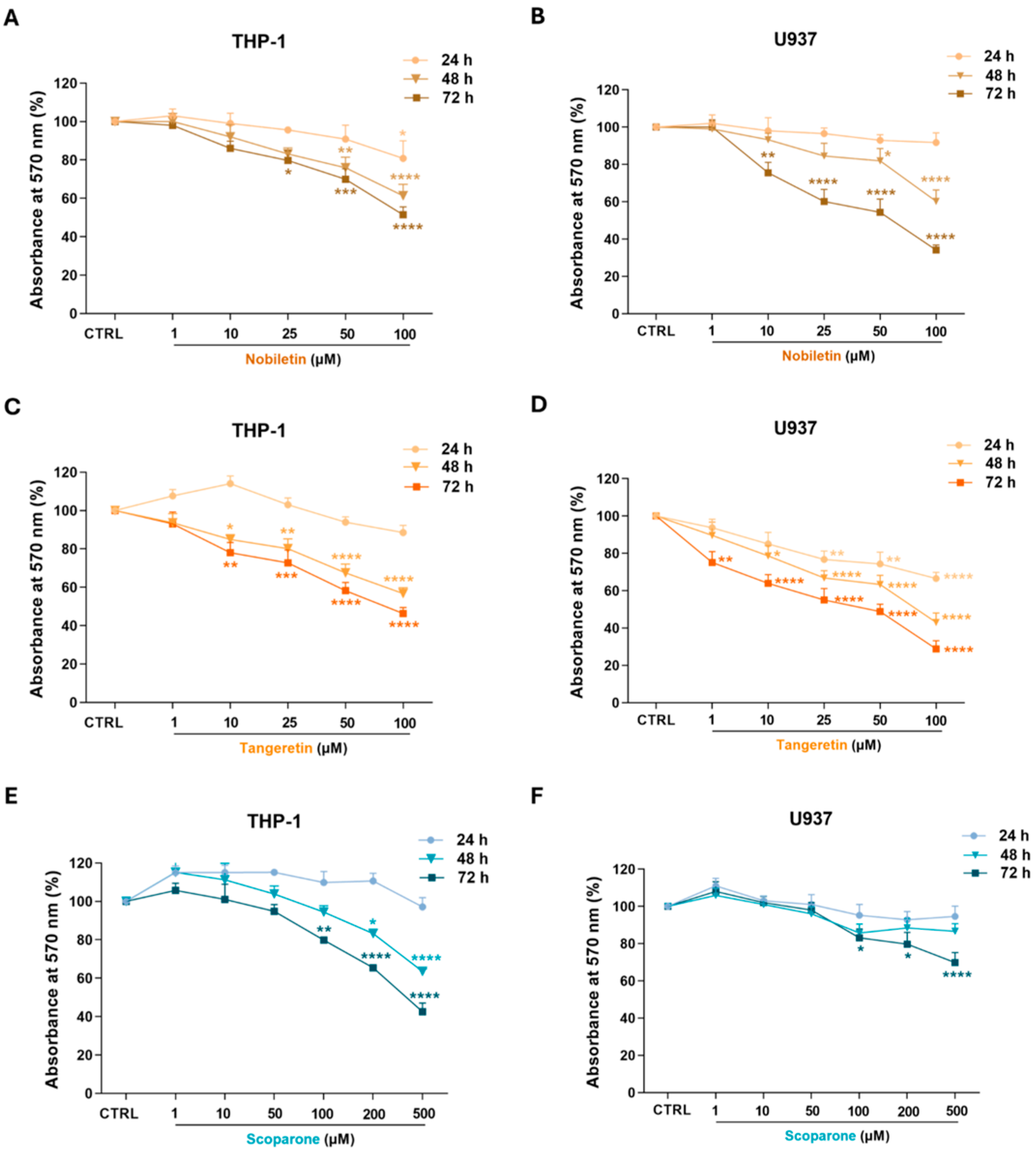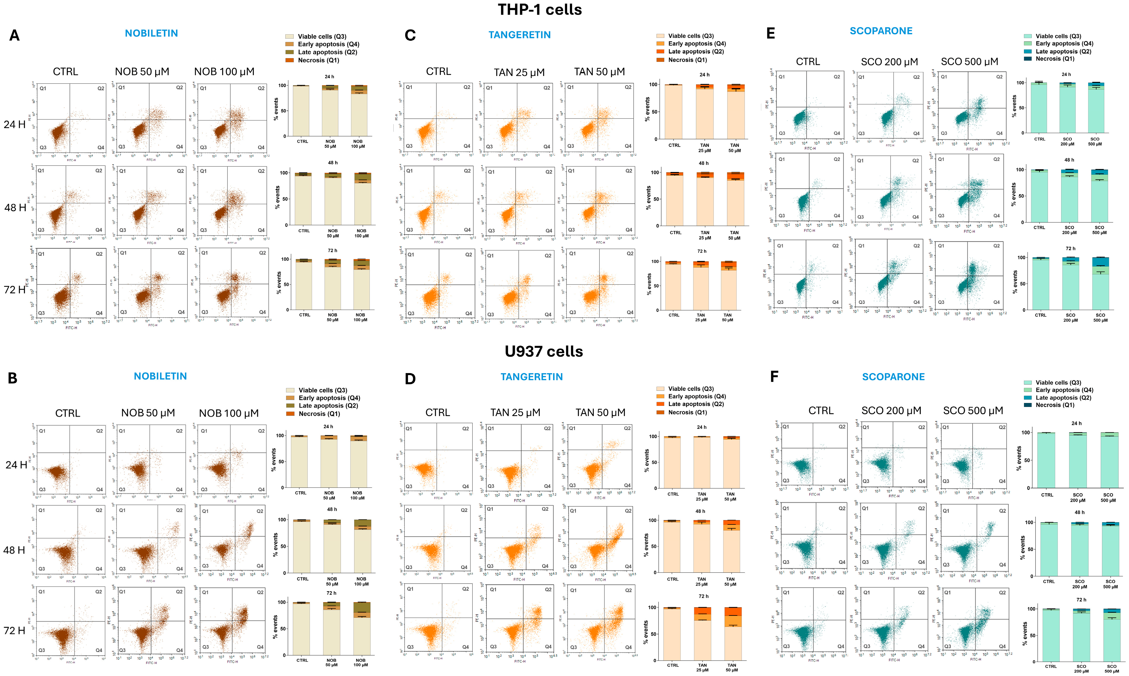 2.5.2. Induction of Apoptosis by Nobiletin, Tangeretin, and Scoparone in Acute Myeloid Leukemia Cells