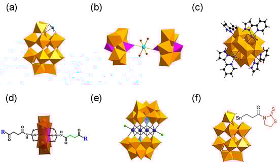 - Anyushin, A.V.; Kondinski, A.; Parac-Vogt, T.N. Hybrid polyoxometalates as post-functionalization platforms: From fundamentals to emerging applications. Chem. Soc. Rev. 2020, 49, 382–432. [Google Scholar] [CrossRef]