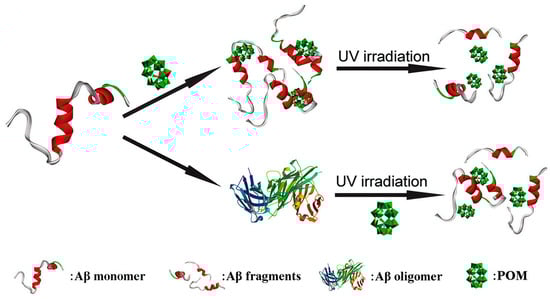 Schematicrepresentation of POMs used to effectively inhibit the aggregation of Aβ peptides by degrading their monomers and oligomers upon photo-irradiation [46].