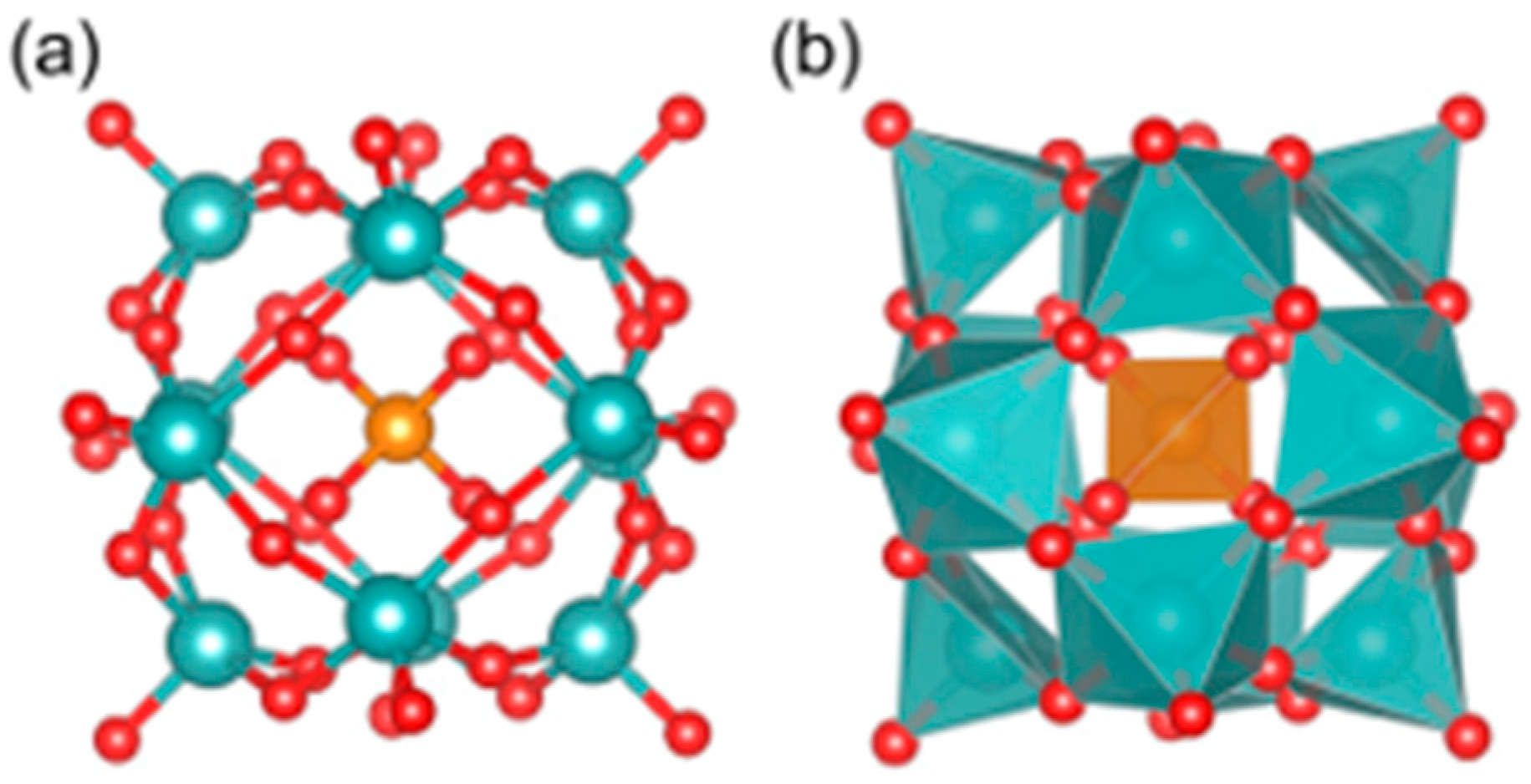 - Mal, S.S.; Banerjee, A.; Kortz, U. The cyclic 48-tungsto-8-phosphate [H7P8W48O184]33− Contant–Tézé polyanion and its derivatives [H6P4W24O94]18− and [H2P2W12O48]12−: Structural aspects and reactivity. Dalton Trans. 2025, 54, 5208–5233. [Google Scholar] [CrossRef] [PubMed]