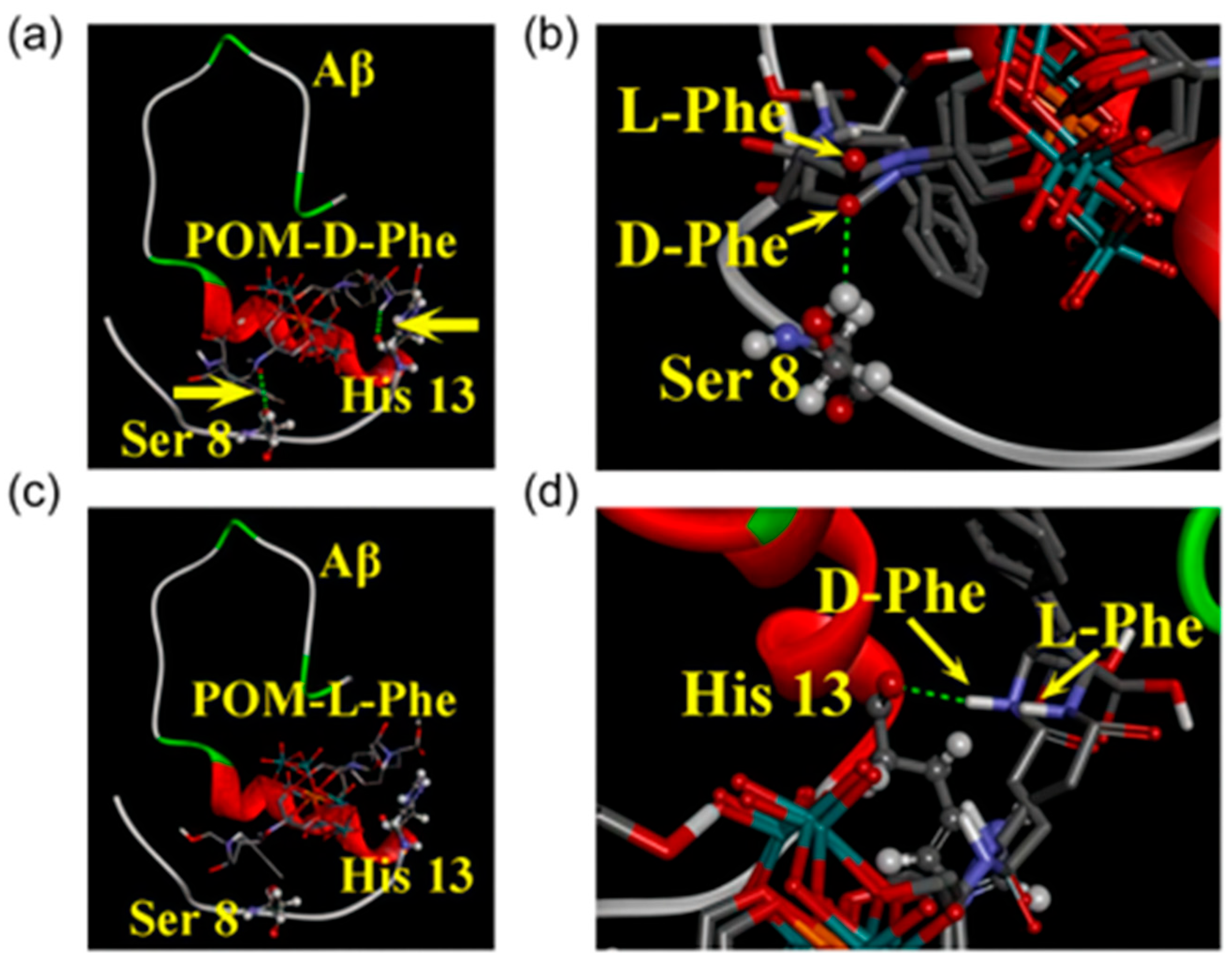 - Hu, S.; Ning, X.; Lv, J.; Wei, Y.; Zhang, H.; Li, M. Enantioselective modulation of amyloid burden and memory deficits by chiral polyoxometalates for Alzheimer’s disease treatment. Inorg. Chem. Front. 2023, 10, 5347–5356. [Google Scholar] [CrossRef]