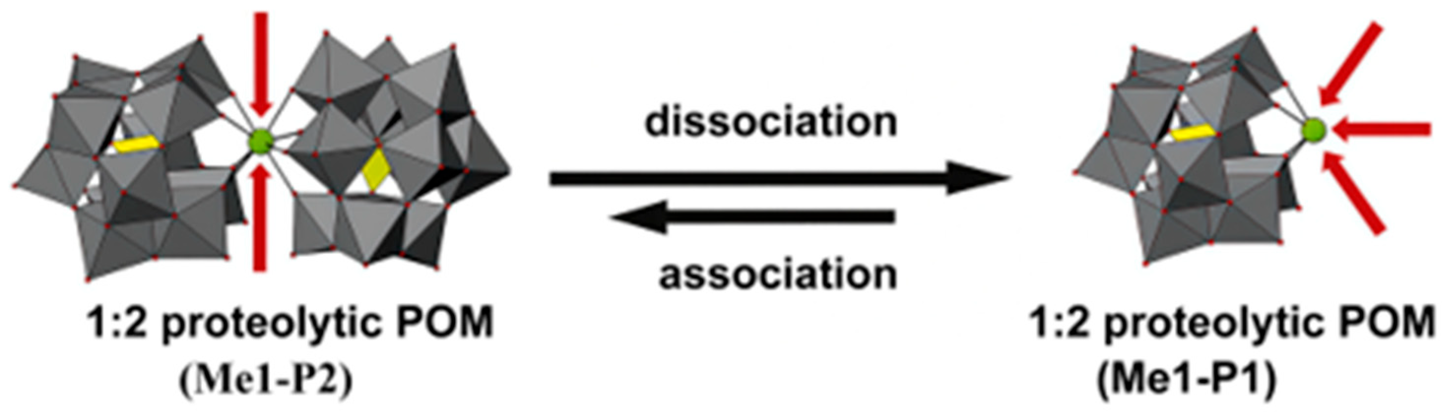 - Salazar Marcano, D.E.; Savić, N.D.; Abdelhameed, S.A.M.; De Azambuja, F.; Parac-Vogt, T.N. Exploring the Reactivity of Polyoxometalates toward Proteins: From Interactions to Mechanistic Insights. JACS Au 2023, 3, 978–990. [Google Scholar] [CrossRef] [PubMed]
