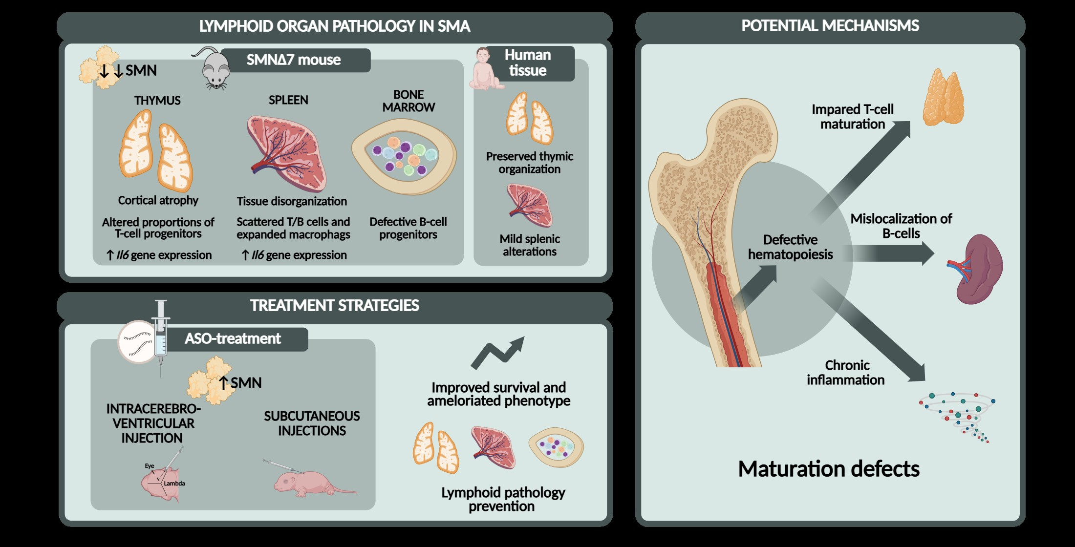 Guillamón, P.; Lindner, G.; Guillen, J.; Gatius, A.; Gras, S.; Martínez-España, L.; Piedrafita, L.; Panosa, A.; Tapia, O.; Mora, C.; et al. Lymphoid Organ Architecture and Hematopoiesis Disruption in Spinal Muscular Atrophy: Therapeutic Rescue by SMN Restoration. Int. J. Mol. Sci. 2026, 27, 1274. https://doi.org/10.3390/ijms27031274