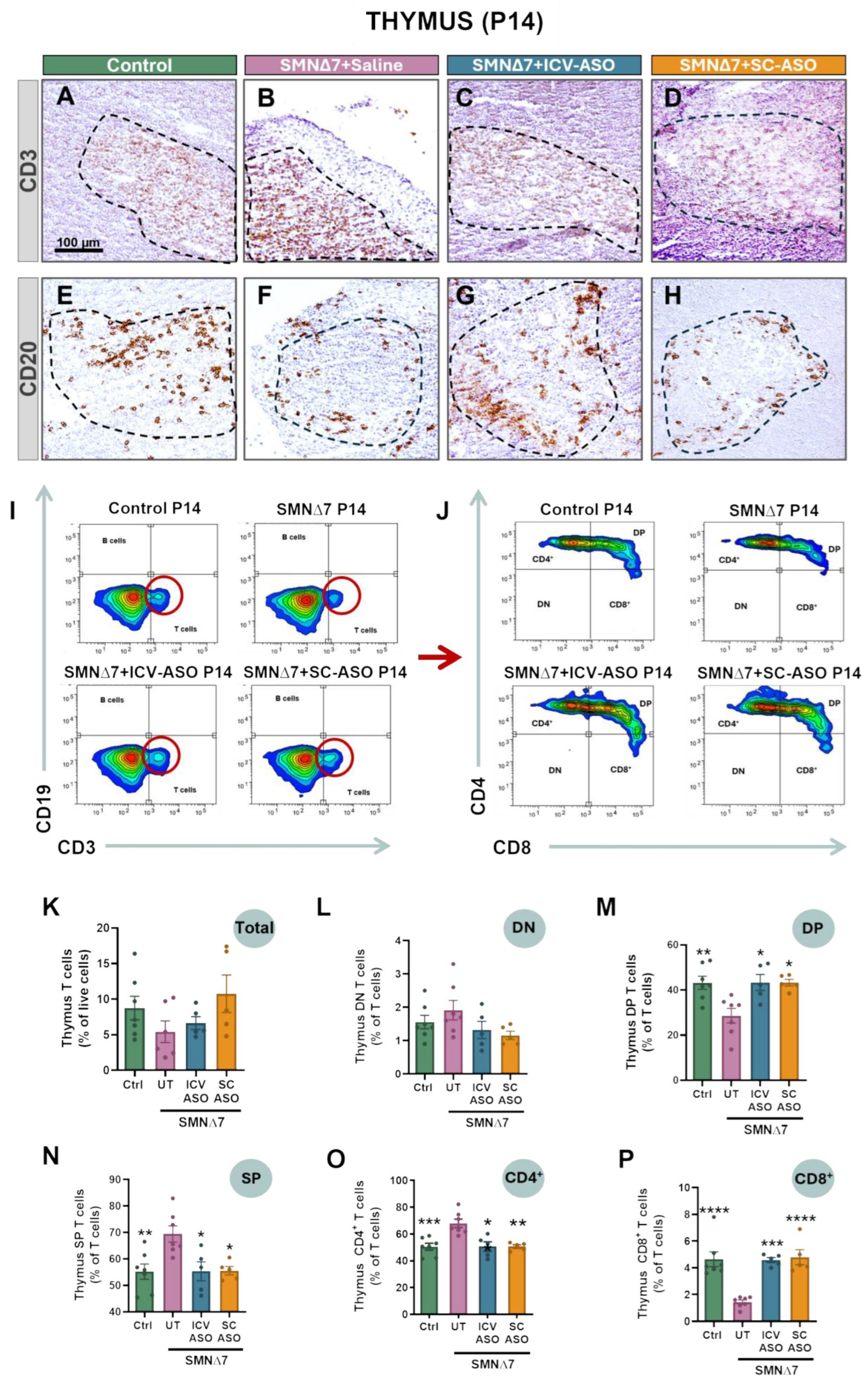 2.4. SMA Thymus Exhibits T-Cell Maturation Defects, Which Are Prevented by SMN-ASO Treatments