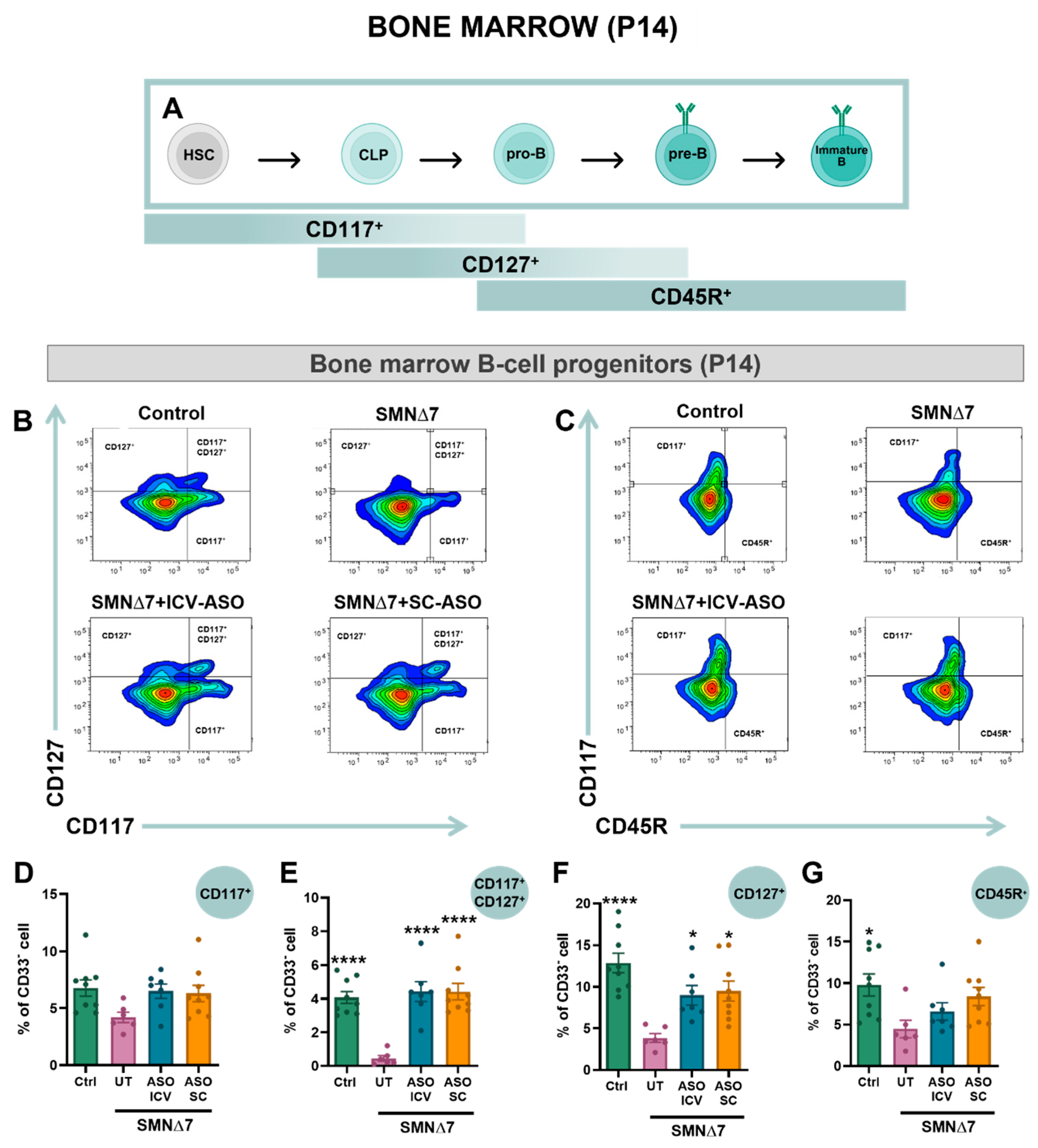 2.6. Bone Marrow B-Cell Development Is Impaired in SMA and Prevented by SMN-ASO Treatment