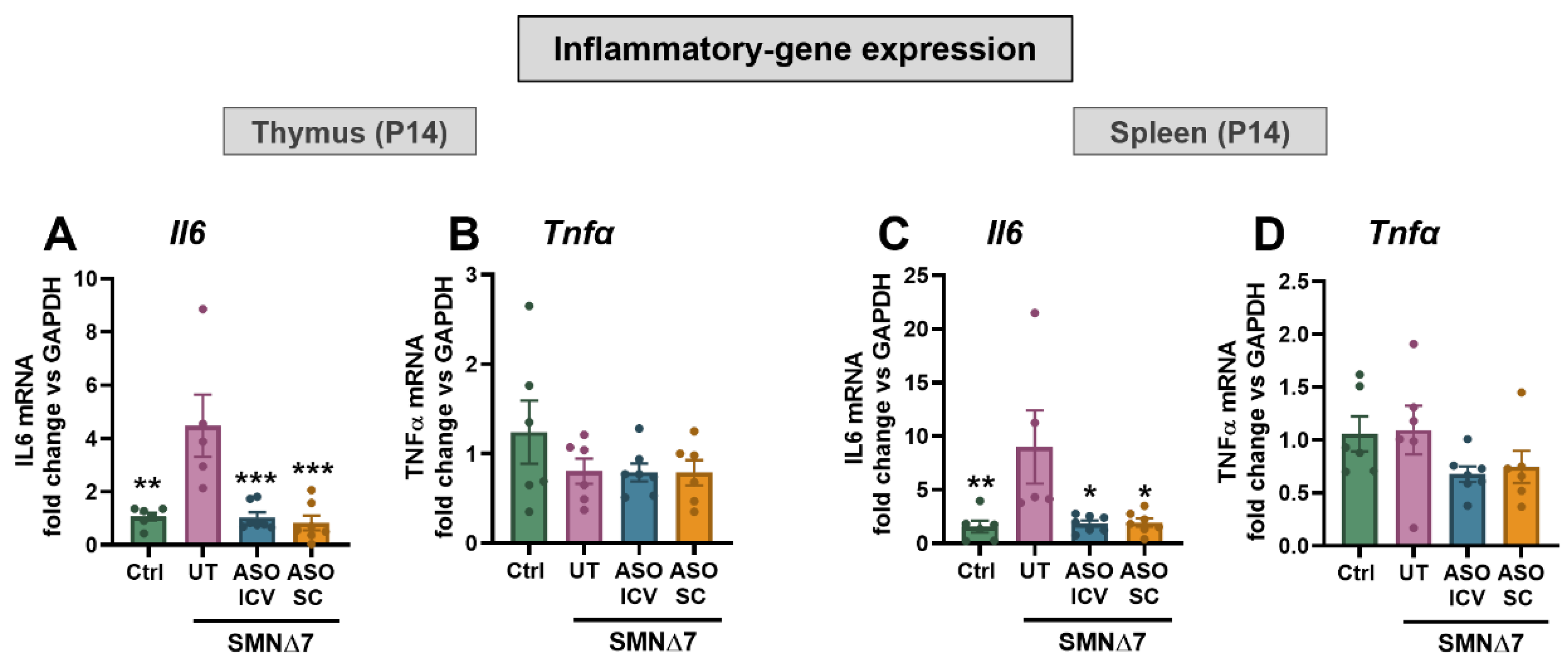 2.9. SMN-ASO Treatment Prevents IL-6–Mediated Inflammation Induced by SMN Deficiency in Lymphoid Organs