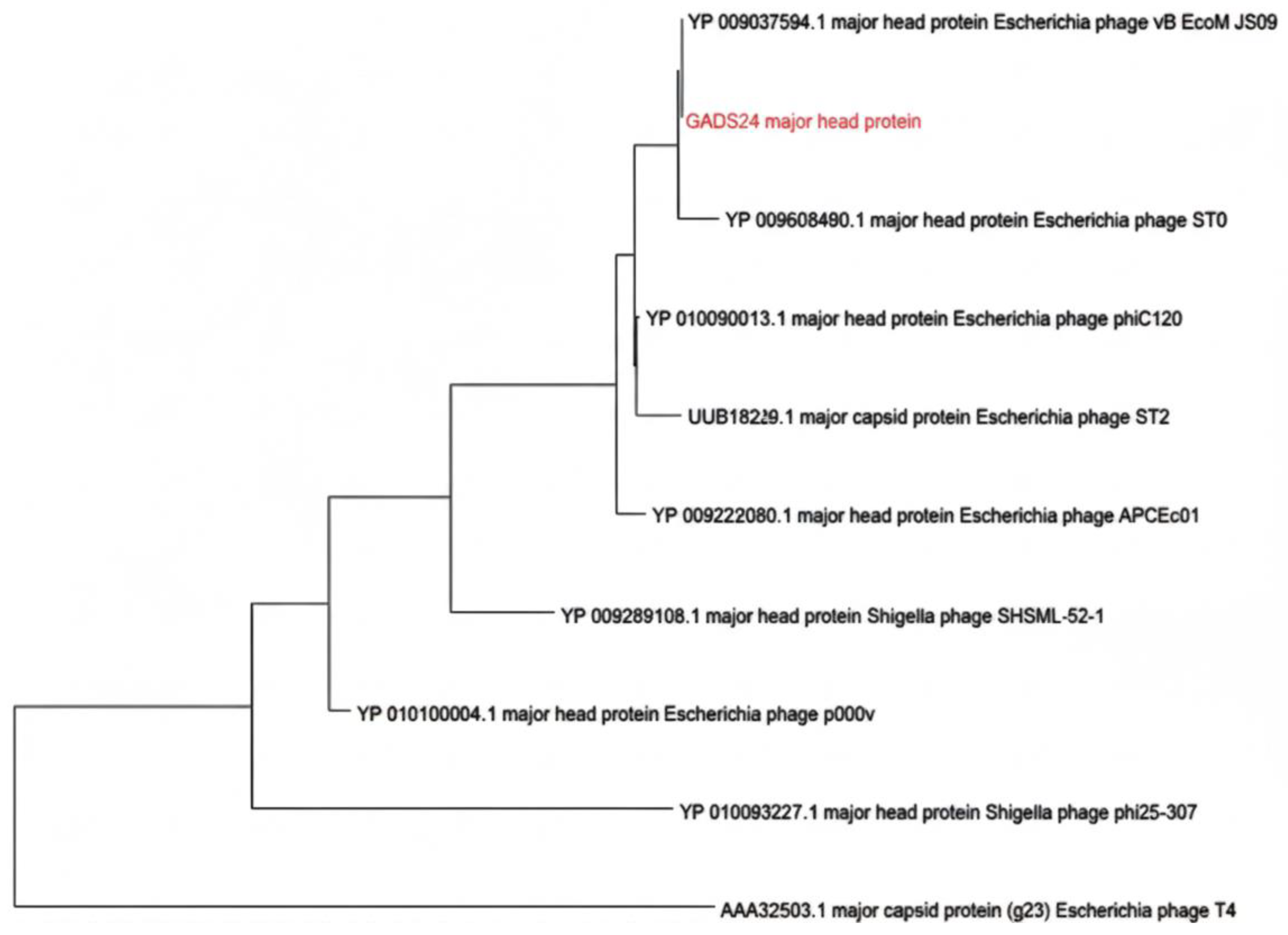 Alrahimi, J.; Alsubhi, G.; Aldahlawi, A.; Basingab, F.S.; Imam, M.A.; Felemban, H.; Alharbi, N.; Alshaik, S.; Sonbol, H.S.; Zaher, K.; et al. A Lytic Mosigvirus Phage (GADS24) from a Poultry-Farm Environment: Genome-Resolved Characterization and In Vitro Biocontrol-Relevant Phenotyping Against Escherichia coli. Int. J. Mol. Sci. 2026, 27, 1276. https://doi.org/10.3390/ijms27031276