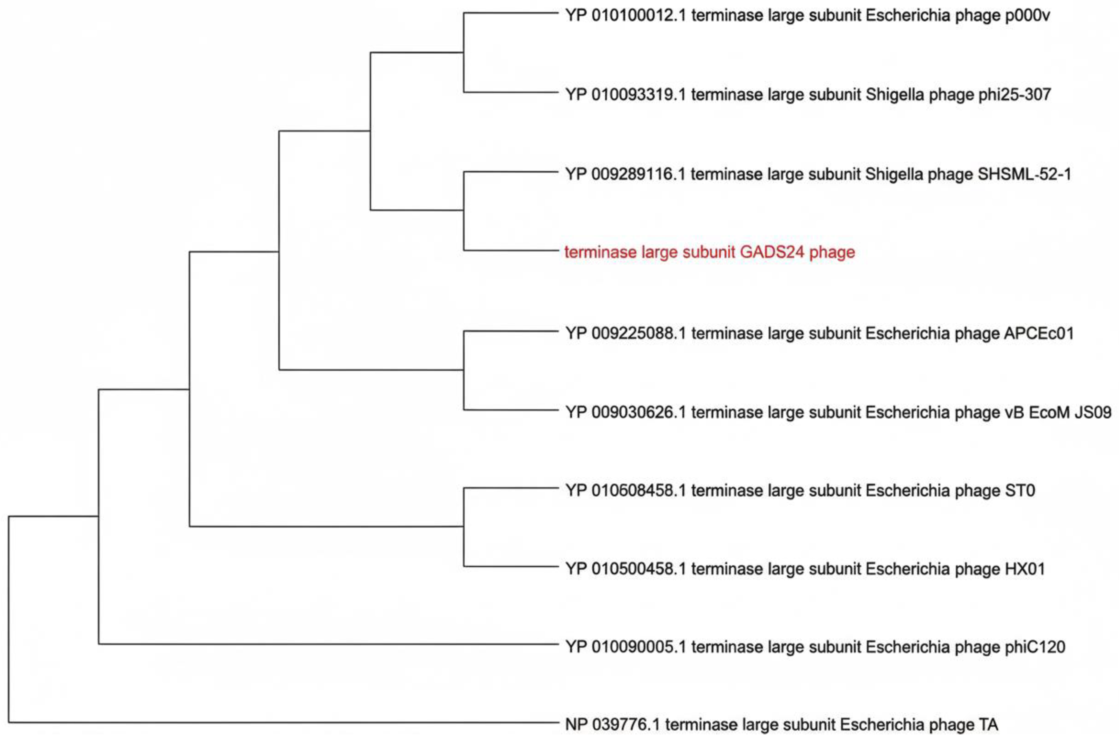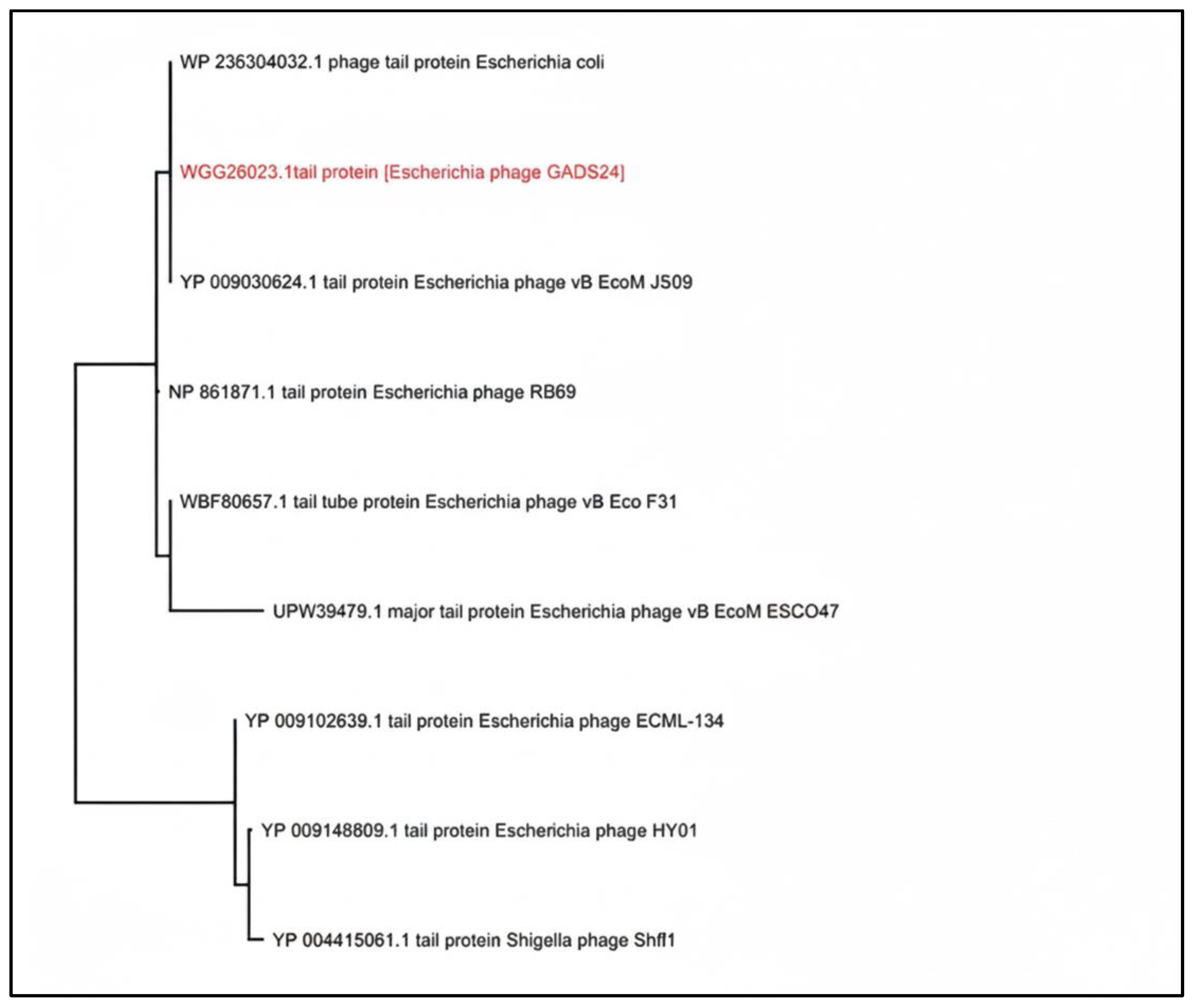 - Jo, D.; Kim, H.; Lee, Y.; Kim, J.; Ryu, S. Characterization and genomic study of EJP2, a novel jumbo phage targeting antimicrobial resistant Escherichia coli. Front. Microbiol. 2023, 14, 1194435. [Google Scholar] [CrossRef] [PubMed]