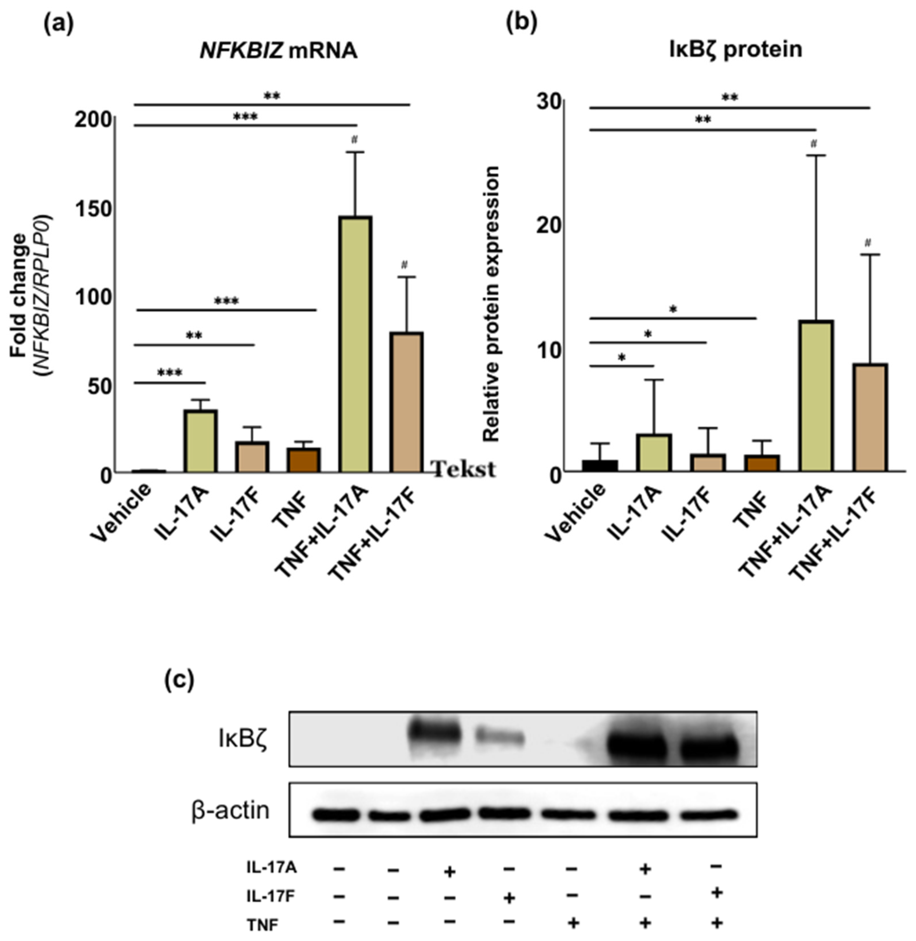 2.1. IL-17A and IL-17F Together with TNF Synergistically Induce NFKBIZ and IκBζ in Dermal Fibroblasts