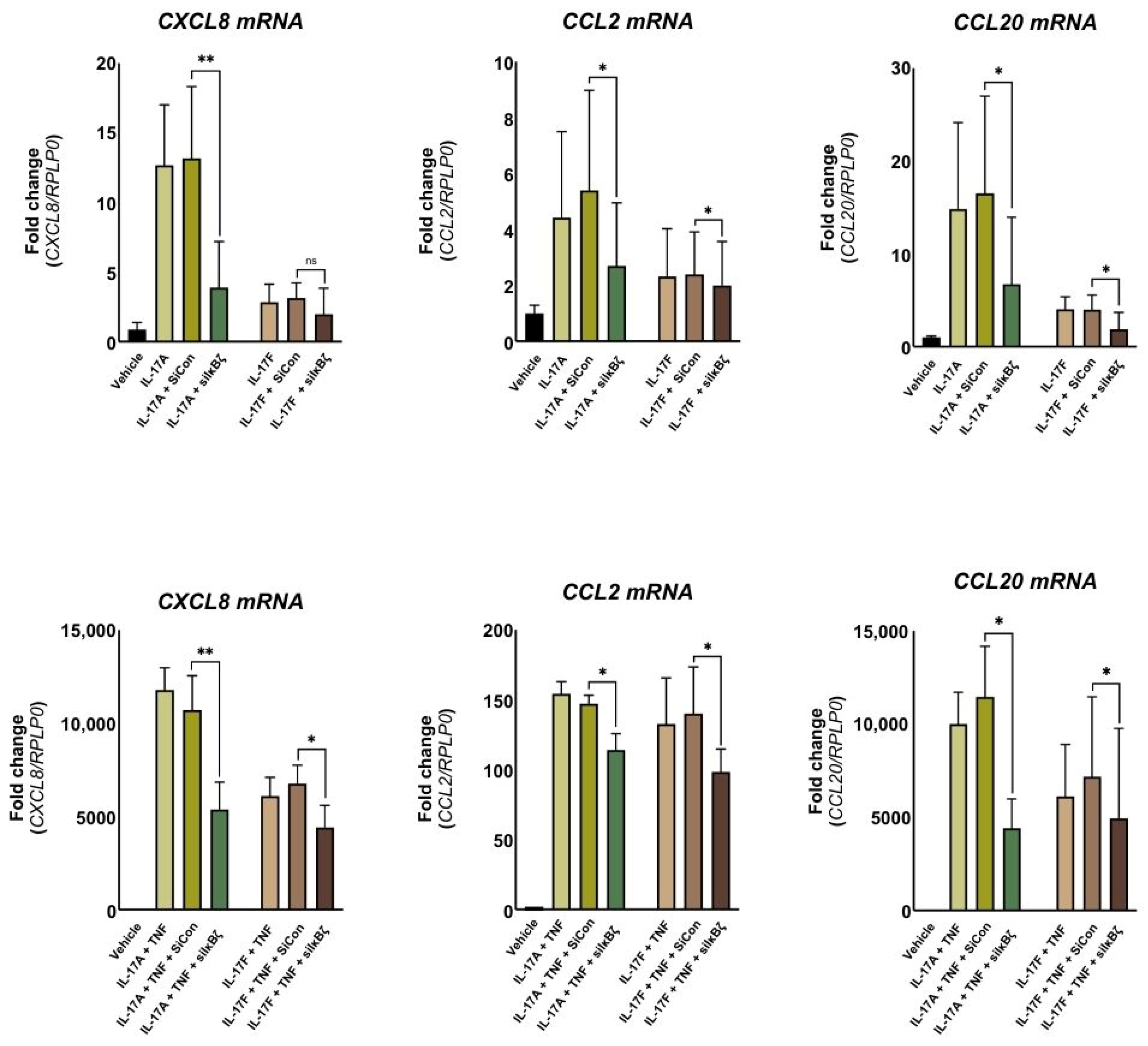 2.3. NFKBIZ Knockdown Attenuates Cytokine-Induced Expression of Inflammatory Mediators in Dermal Fibroblasts