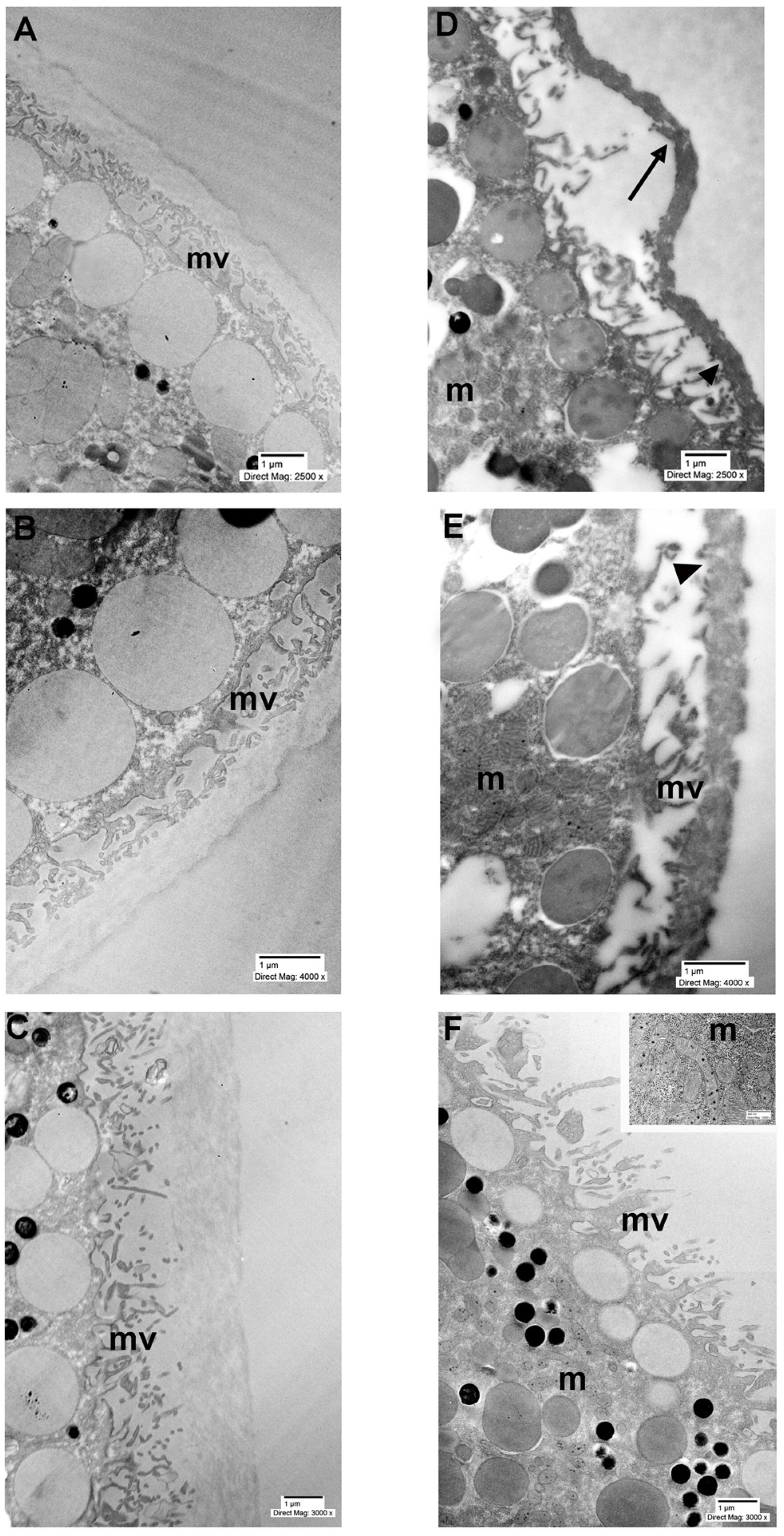 29]. Next, a polymerization procedure overnight at 65 °C was performed. Ultrathin sections of 80 nm of thickness were cut on a Leica Ultracut E Ultramicrotome (Leica Microsystems, Wetzlar, Germany) and placed on copper grids, contrasted with UranyLess stain and lead hydroxide, and, lastly, examined in a JEOL-1400 Plus TEM (Jeol Ltd., Tokyo, Japan).