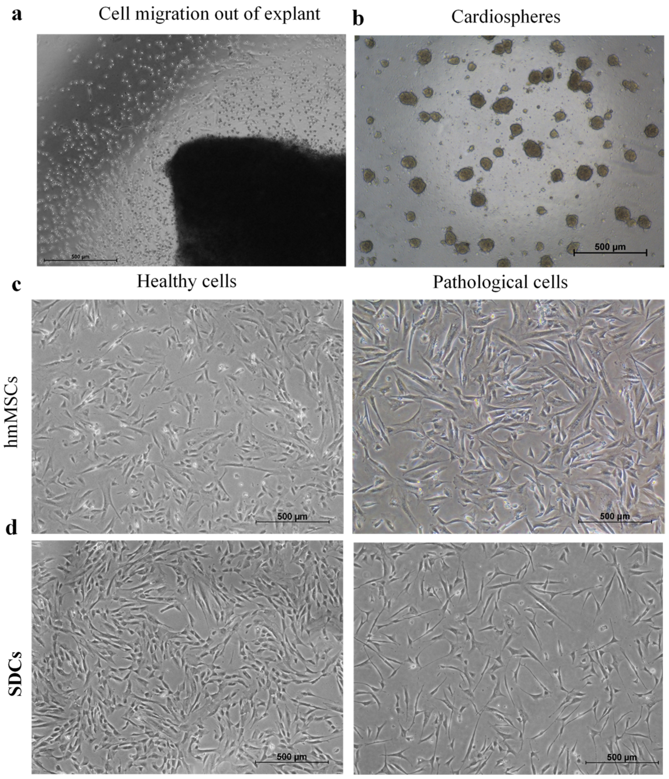 2.1. Isolation and Size Evaluation of Healthy/Not Dilated and Pathological/Dilated Myocardium-Derived hmMSCs and SDCs