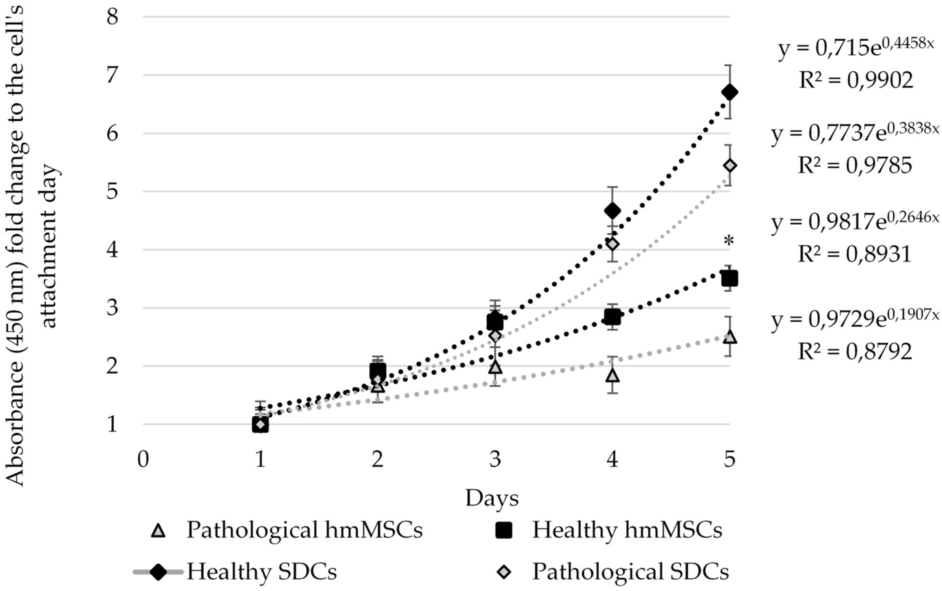 2.2. Proliferation of Healthy and Pathological hmMSCs and SDCs