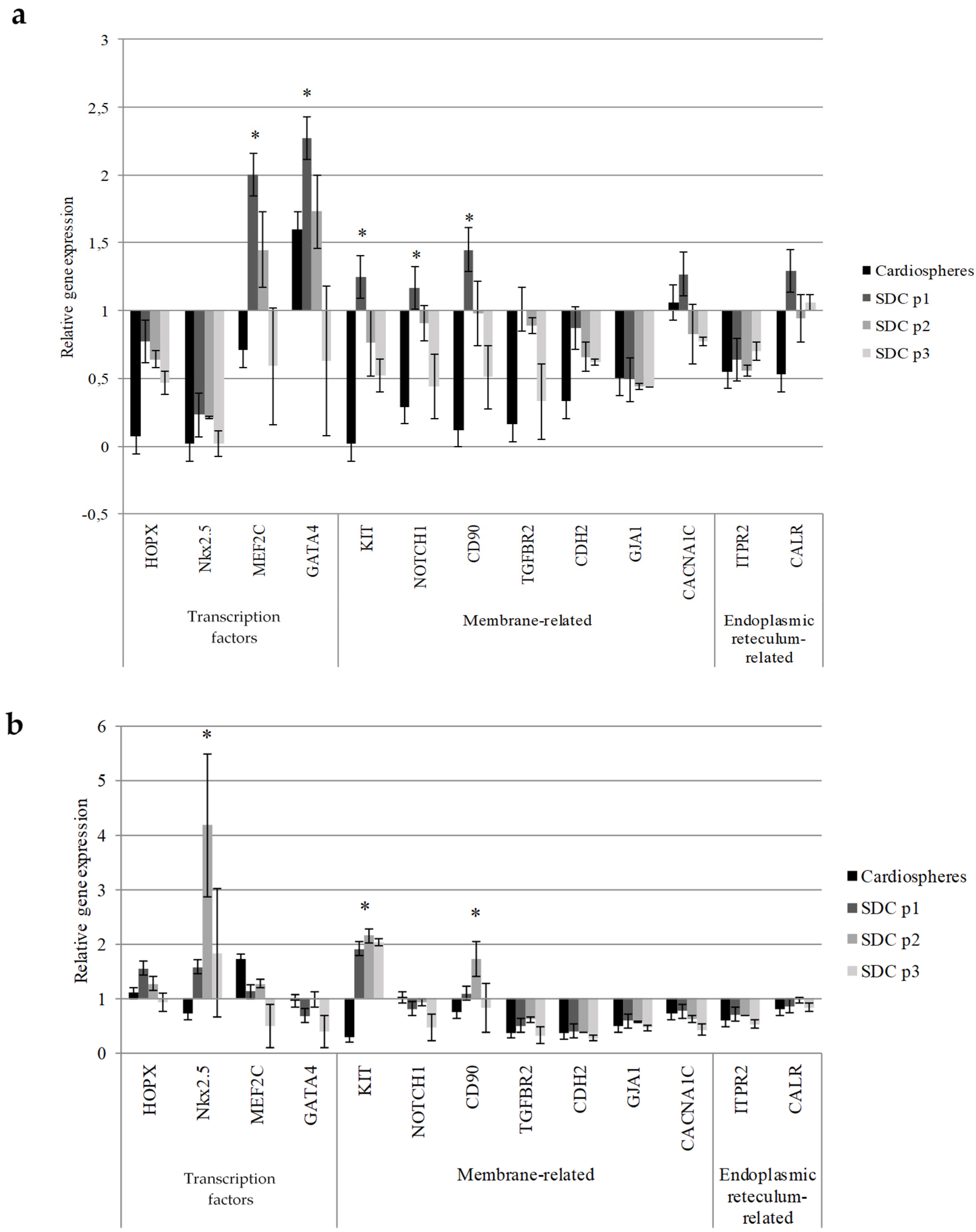 2.5. Cardiac Commitment Gene Expression Profile of Healthy and Pathological Cardiospheres and SDCs Versus hmMSCs