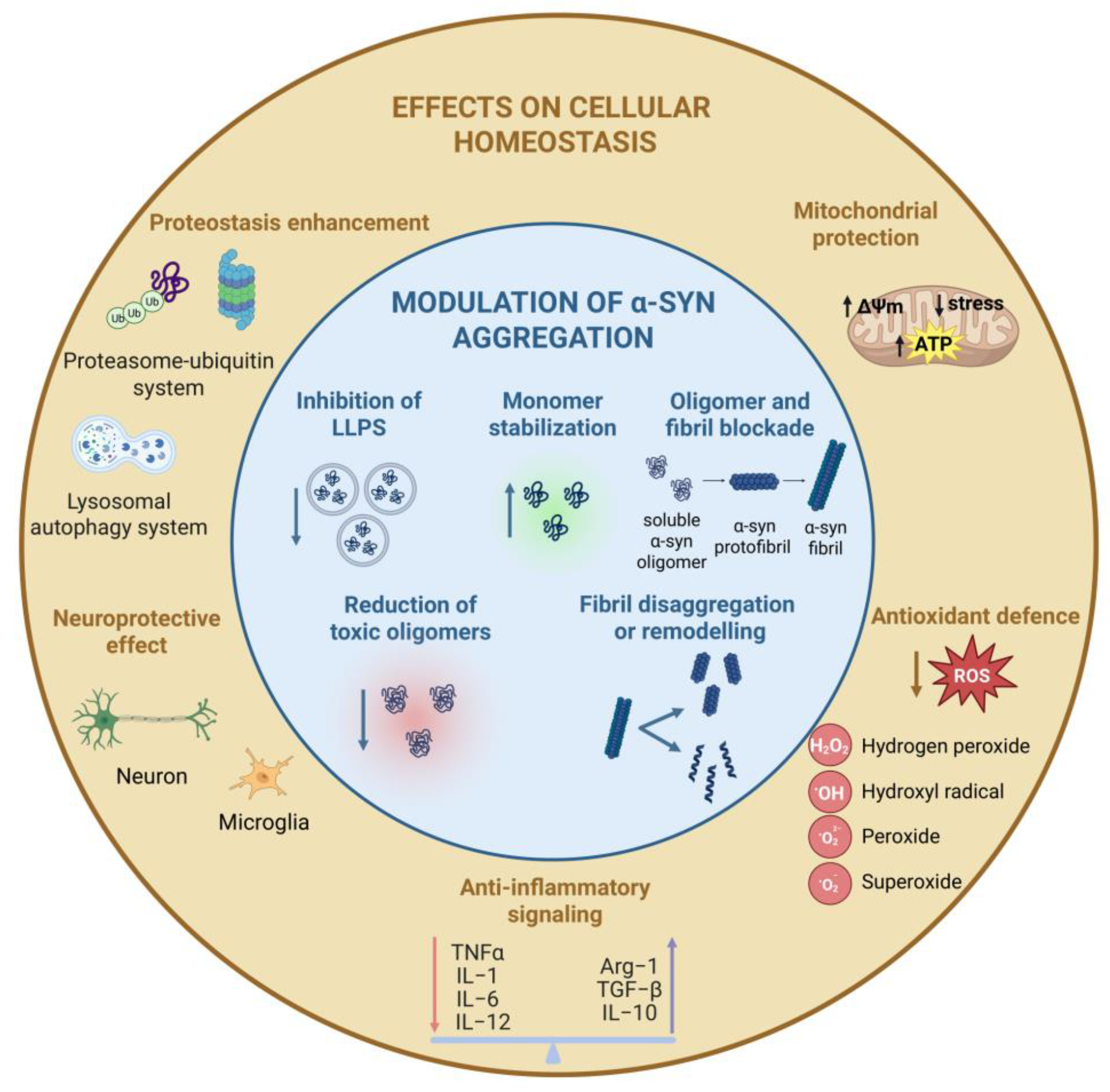 | Reduces α-syn toxicity | α-syn-associated toxicity |