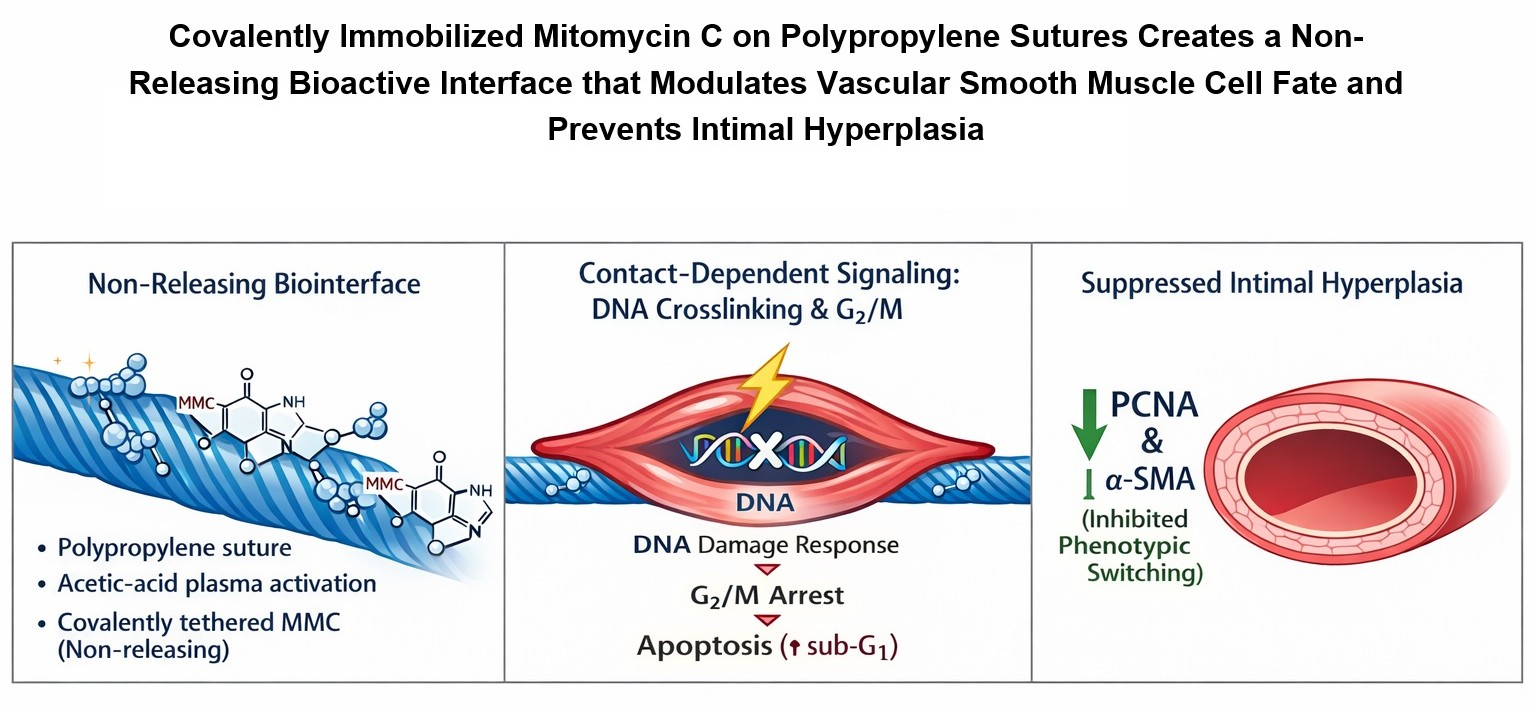 Covalently Immobilized Mitomycin C on Polypropylene Sutures Creates a Non-Releasing Bioactive Interface That Modulates Vascular Smooth Muscle Cell Fate and Prevents Intimal Hyperplasia
