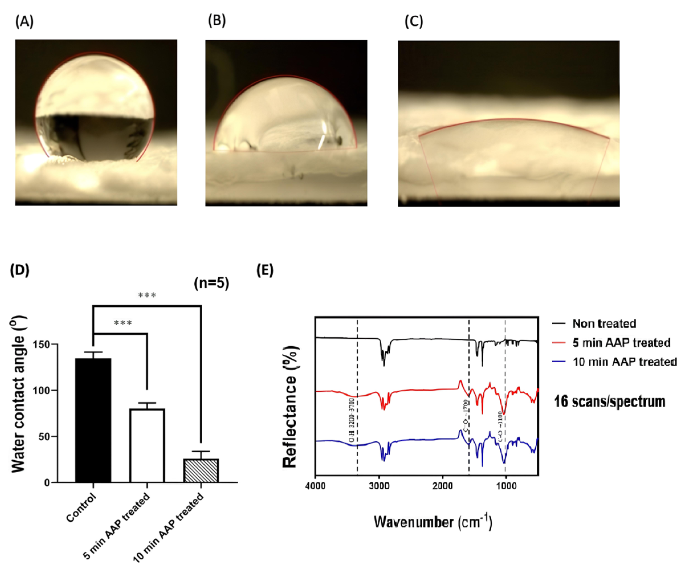 - Liao, S.C.; Chen, K.S.; Chien, J.L.; Chen, S.C.; Lin, W.L. Acetic-Acid Plasma-Polymerization on Polymeric Substrates for Biomedical Application. Nanomaterials 2019, 9, 941. [Google Scholar]