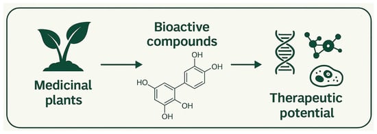 Medicinal plants and natural products continue to represent a rich and rapidly evolving field in molecular sciences. Their longstanding importance in traditional medicine, coupled with modern analytical and biotechnological advancements, has accelerated scientific interest in uncovering novel therapeutic agents from natural sources. The Special Issue “Recent Advances in Medicinal Plants and Natural Products,” published within the Bioactives and Nutraceuticals section of the International Journal of Molecular Sciences (IJMS), was designed to highlight this dynamic research landscape and promote interdisciplinary discussions around natural bioactive compounds. As outlined in the description, this Special Issue showcases studies exploring the therapeutic potential of natural compounds, advances in extraction and chemical characterization techniques, and molecular investigations that clarify mechanisms of action (Figure 1).