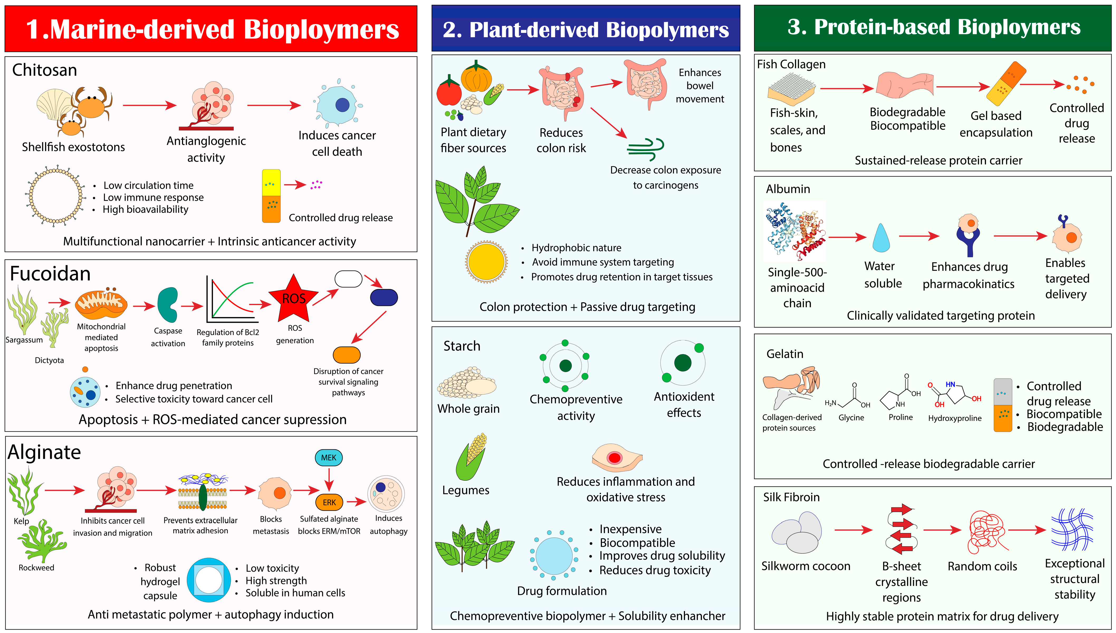 4.2. Anticancer Properties and Drug Delivery Potential of Marine and Plant-Derived Biopolymers