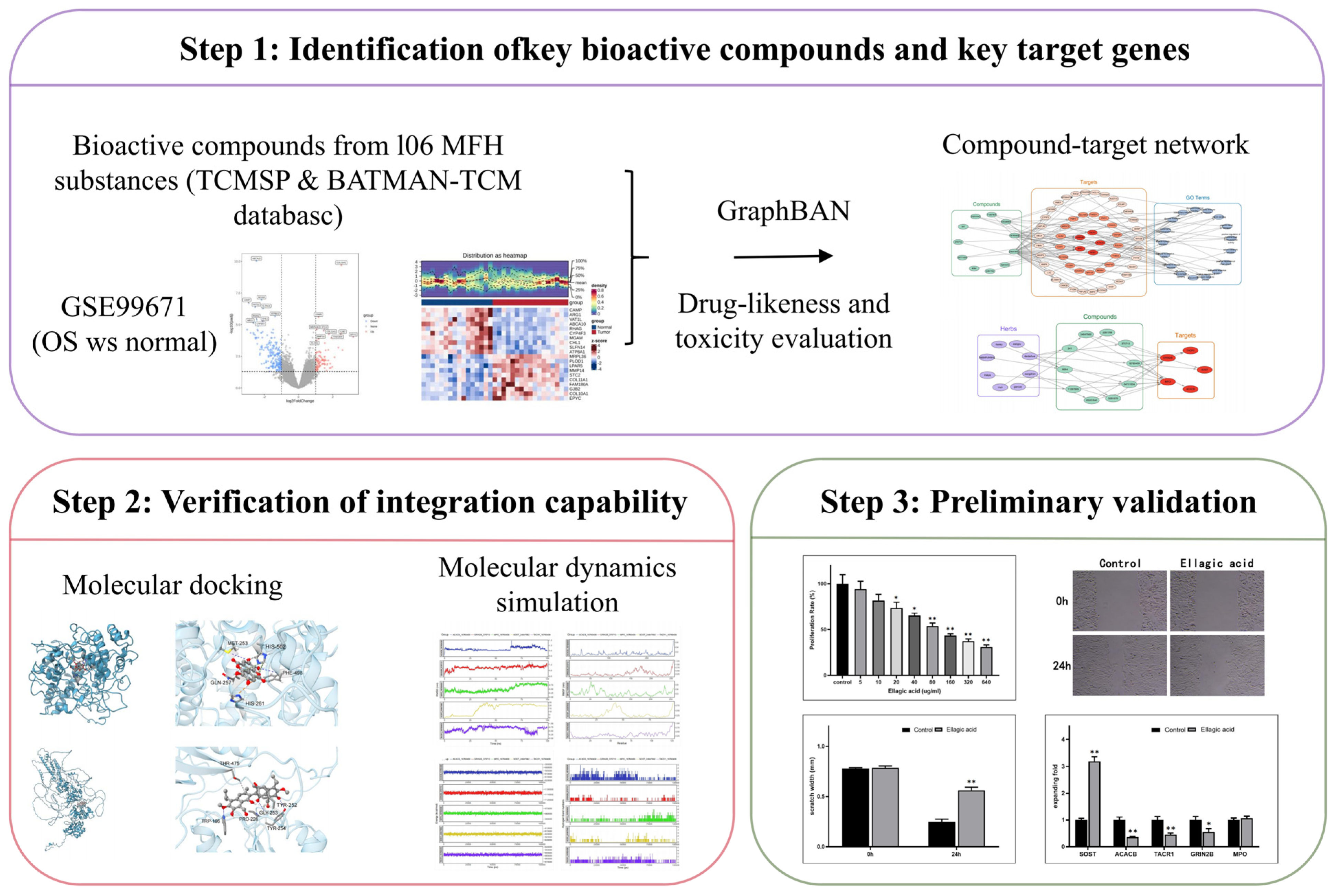 2.3. MFH-Derived Bioactive Compounds Demonstrated Multi-Target Regulatory Effects with Therapeutic Potential for OS