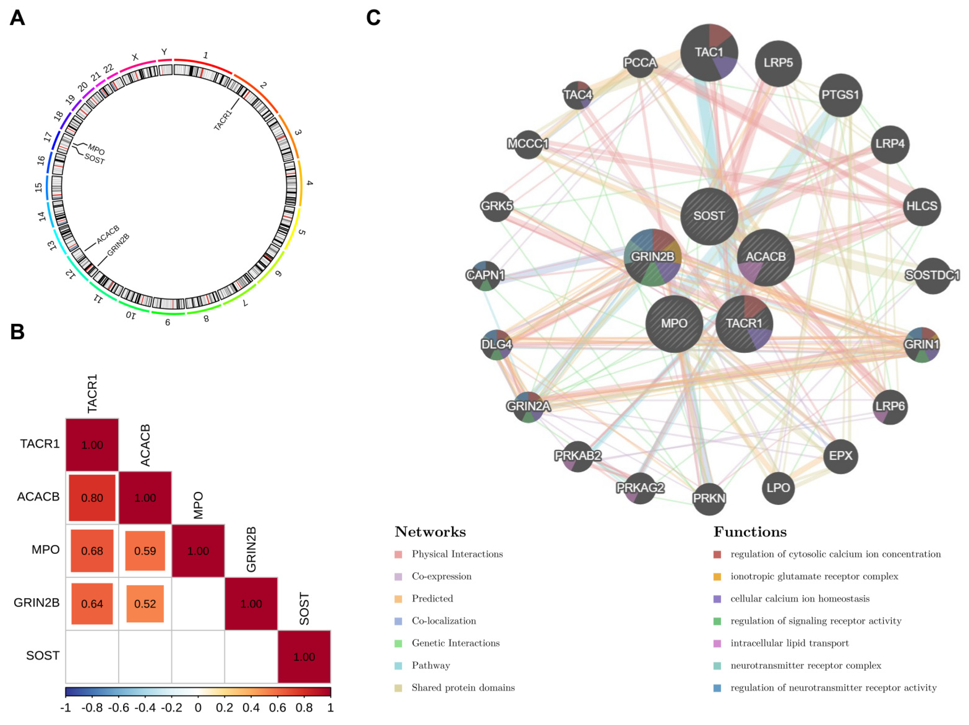 4.10. Chromosomal Mapping, Correlation, and Functional Network Analyses of Key Target Genes