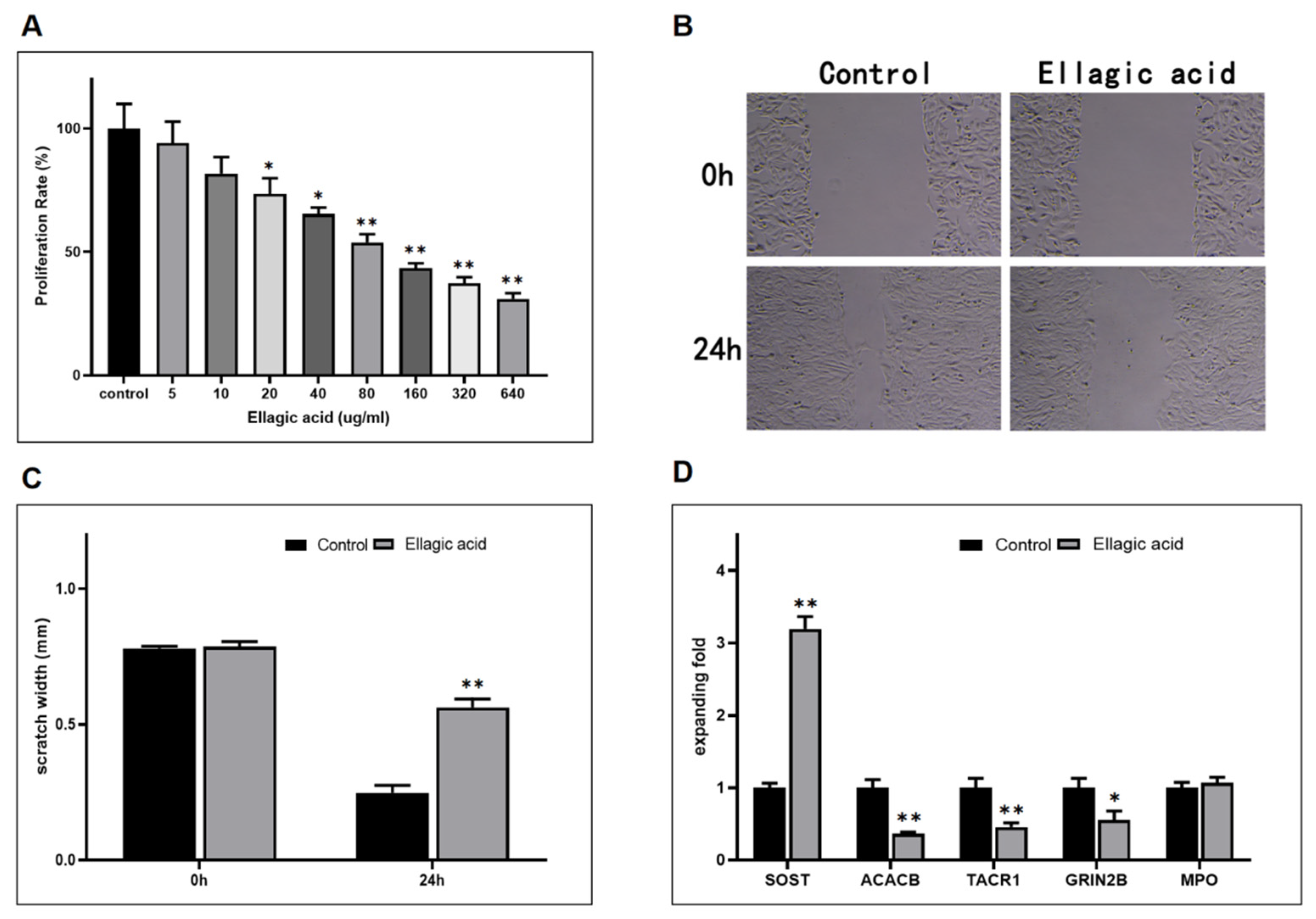 2.11. Ellagic Acid Inhibits the Proliferation, Migration of 143B Cell