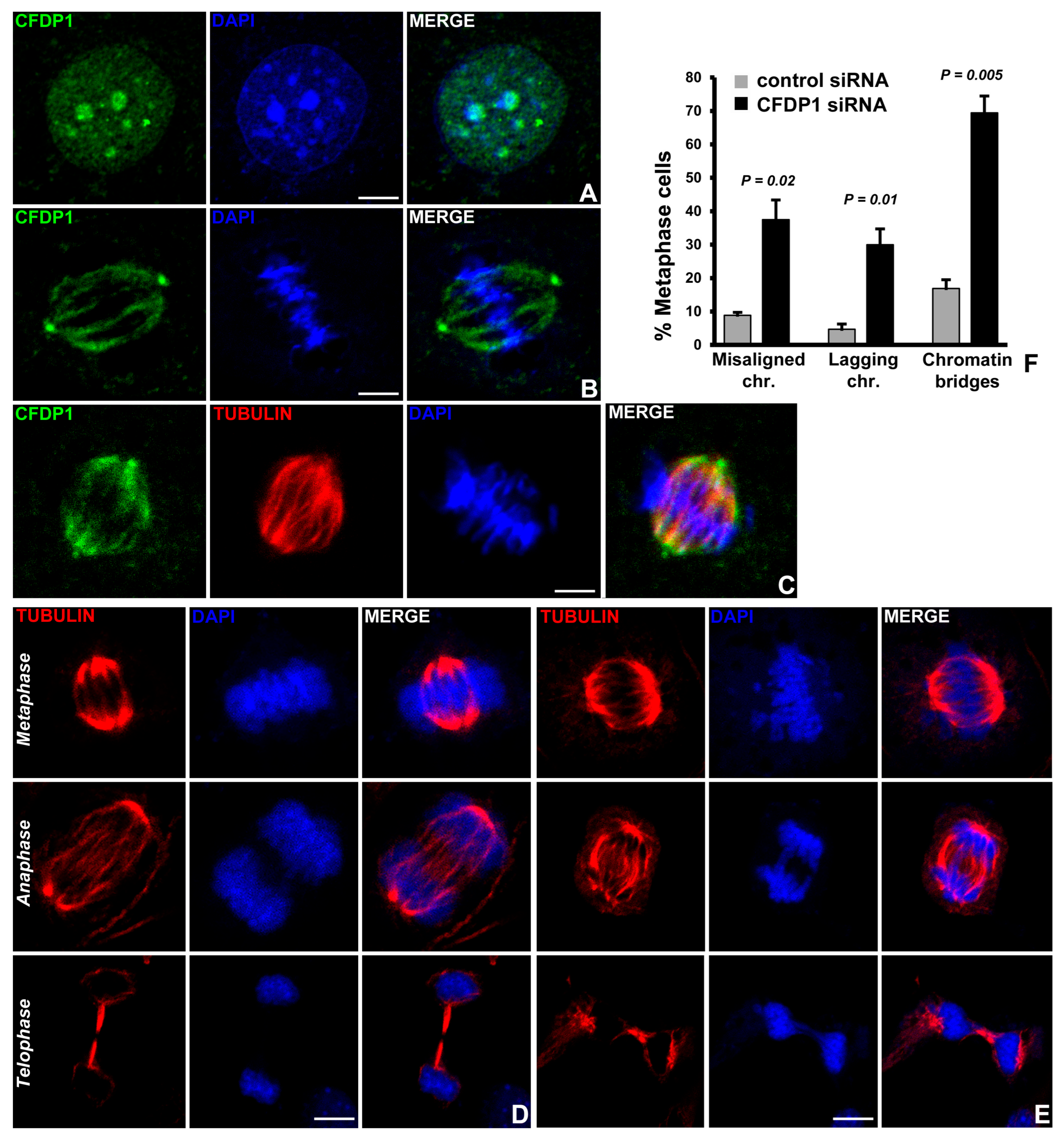 54], and loss thereof as it occurs in CFDP1-depleted cells explains the spindle and K-fiber defects and mitosis phenotypes observed in our CFDP1-depleted cells and embryos.